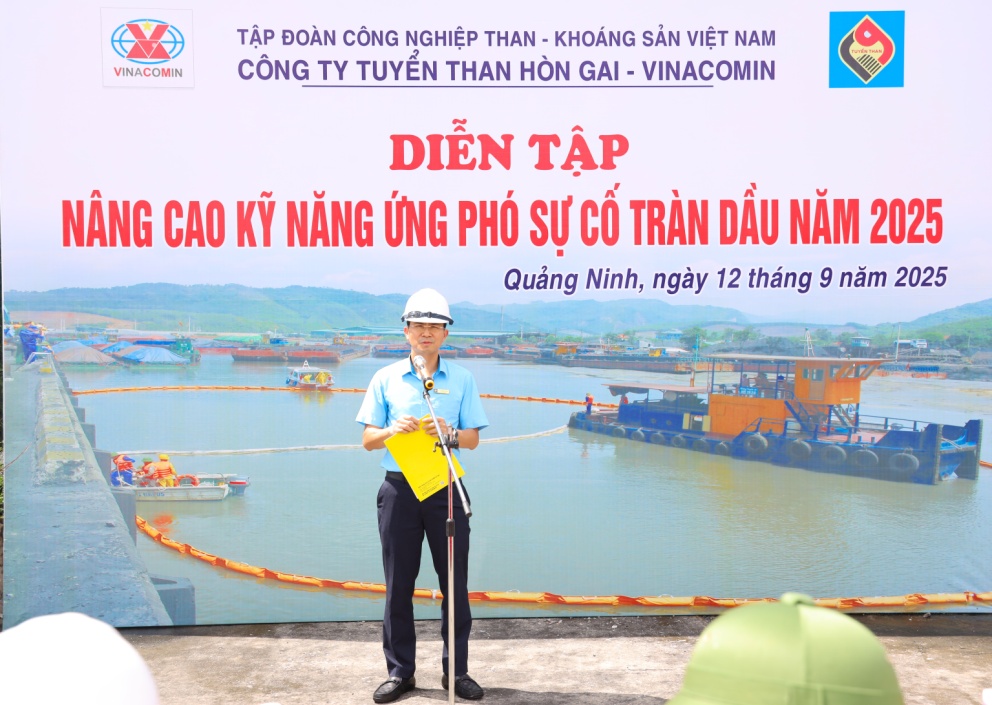 Sáng ngày 12/9, tại khu vực Cụm bến số 3 Cảng Làng Khánh, Công ty Tuyển than Hòn Gai - Vinacomin đã phối hợp với Công ty Cổ phần SOS Môi trường tổ chức Diễn tập nâng cao kỹ năng ứng phó sự cố tràn dầu năm 2025. Chương trình có sự tham gia của hơn 80 cán bộ, công nhân cùng nhiều phương tiện chuyên dụng như ô tô, xuồng máy, xà lan…