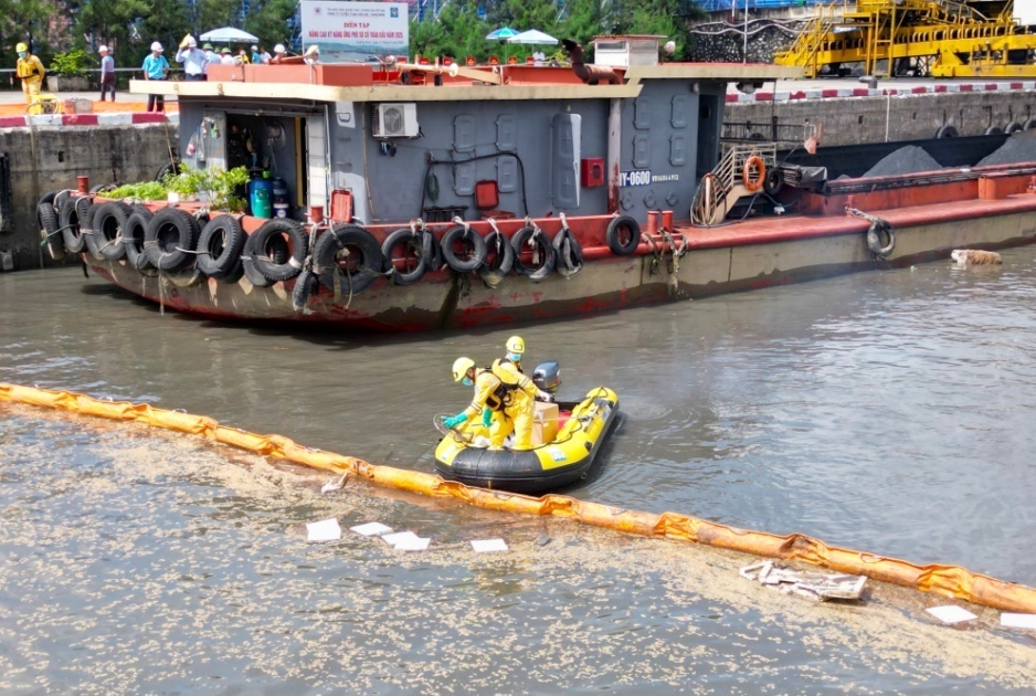 Sau hơn 60 phút nỗ lực khẩn trương, lực lượng tham gia đã hoàn thành tốt các yêu cầu đề ra. Các đơn vị phối hợp đã nhanh chóng thả phao quây chặn dầu, dùng xe phun nước làm mát động cơ, vận hành thiết bị chuyên dụng để vớt, bơm hút, thu gom và xử lý lượng dầu tràn đúng quy định, không để dầu loang rộng ra môi trường xung quanh.