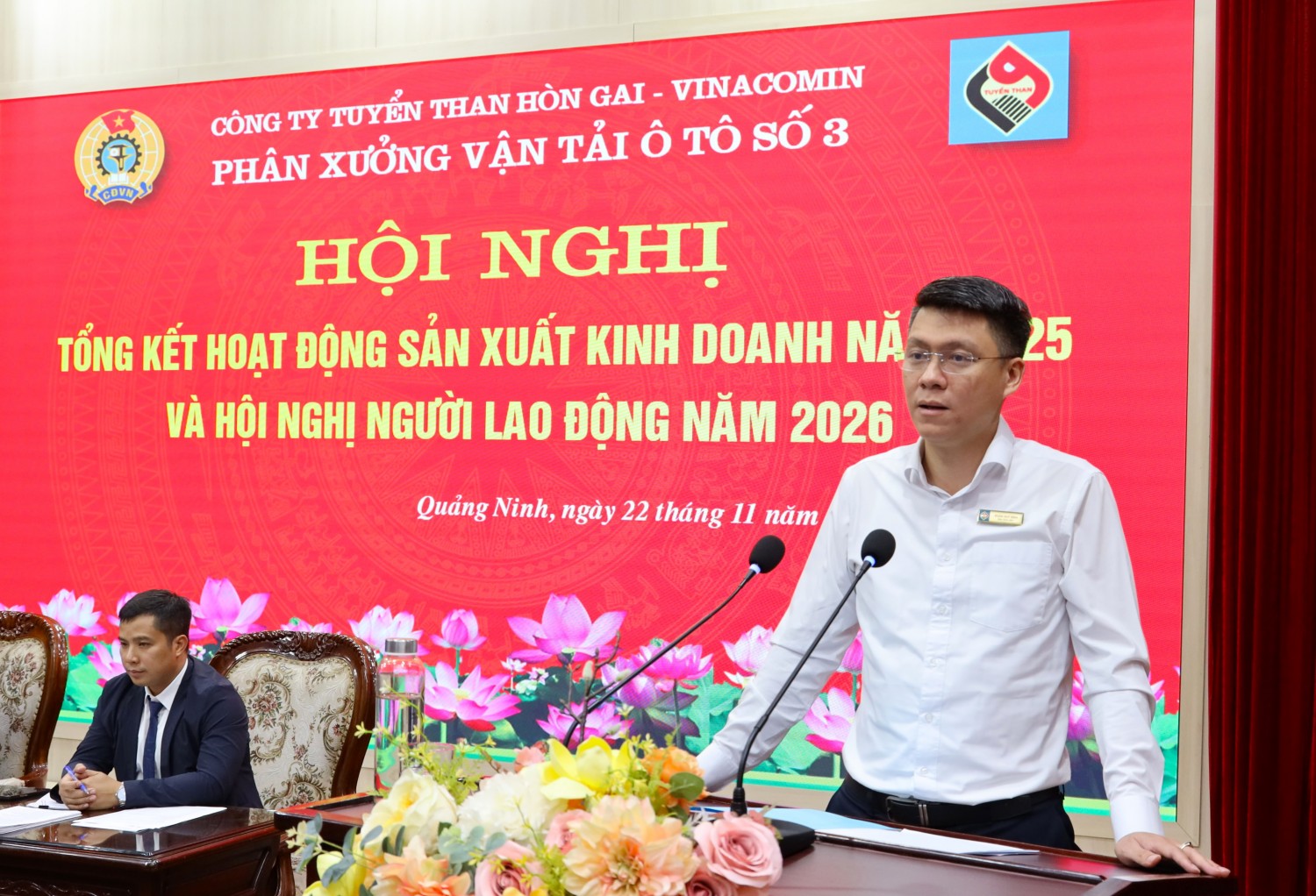 Đồng chí Đoàn Huy Bình - Phó giám đốc Công ty phát biểu chỉ đạo tại hội Nghị người lao động Phân xưởng Vận tải ô tô số 3