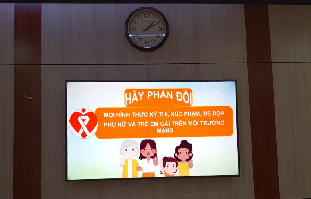 Hình ảnh tuyên truyền trực quan tại trụ sở Công ty với thông điệp “Bình đẳng giới và an toàn cho phụ nữ và trẻ em gái trong kỷ nguyên số”.