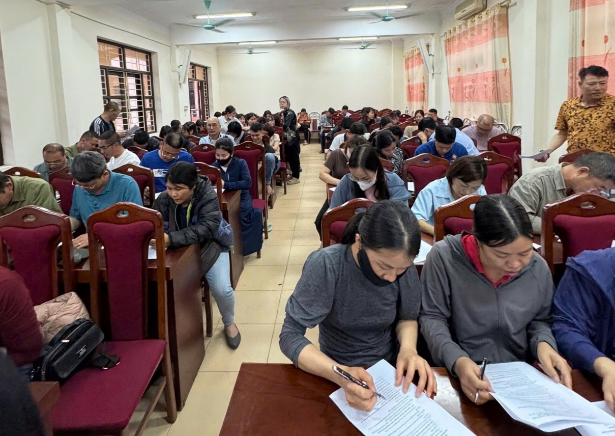 Ảnh: Sau khi huấn luyện, học viên sẽ thực hiện làm bài thu hoạch nhằm đánh giá kết quả tiếp thu kiến thức.