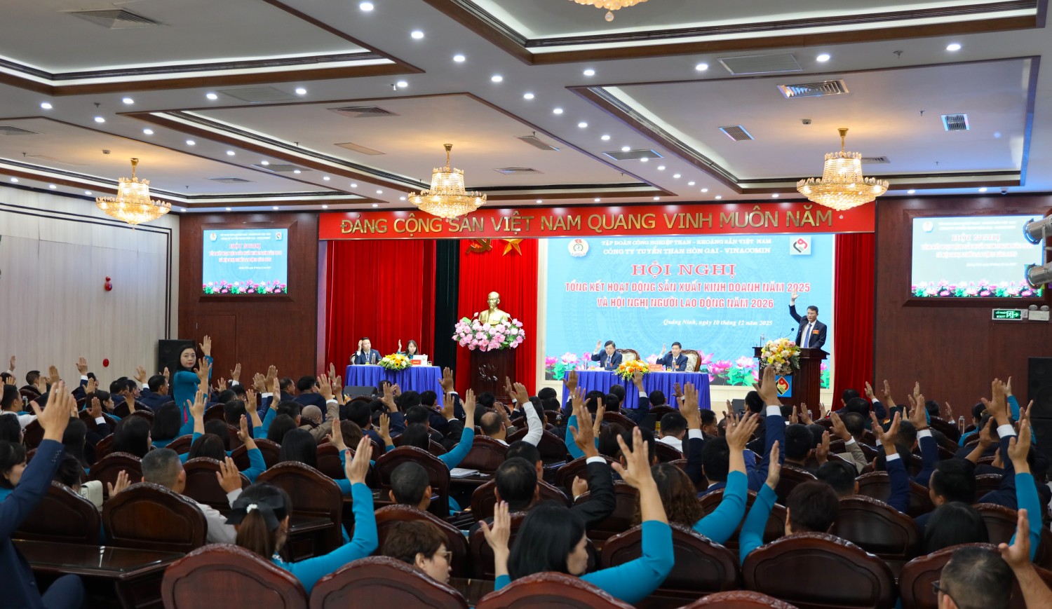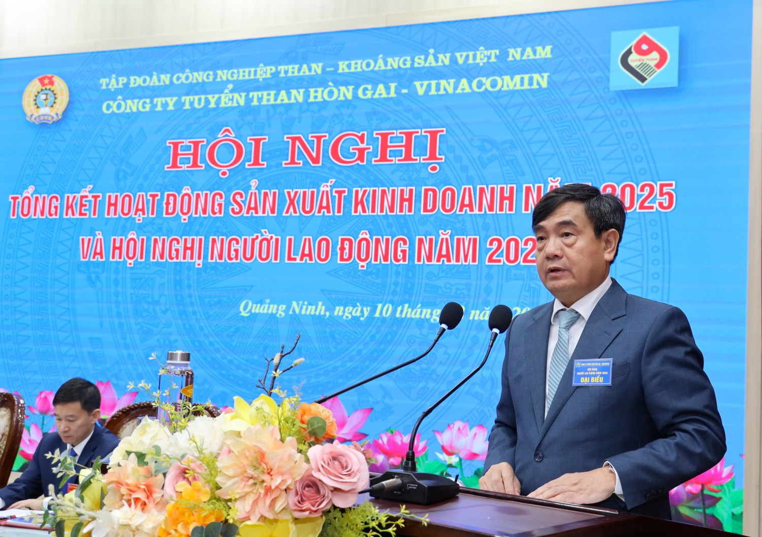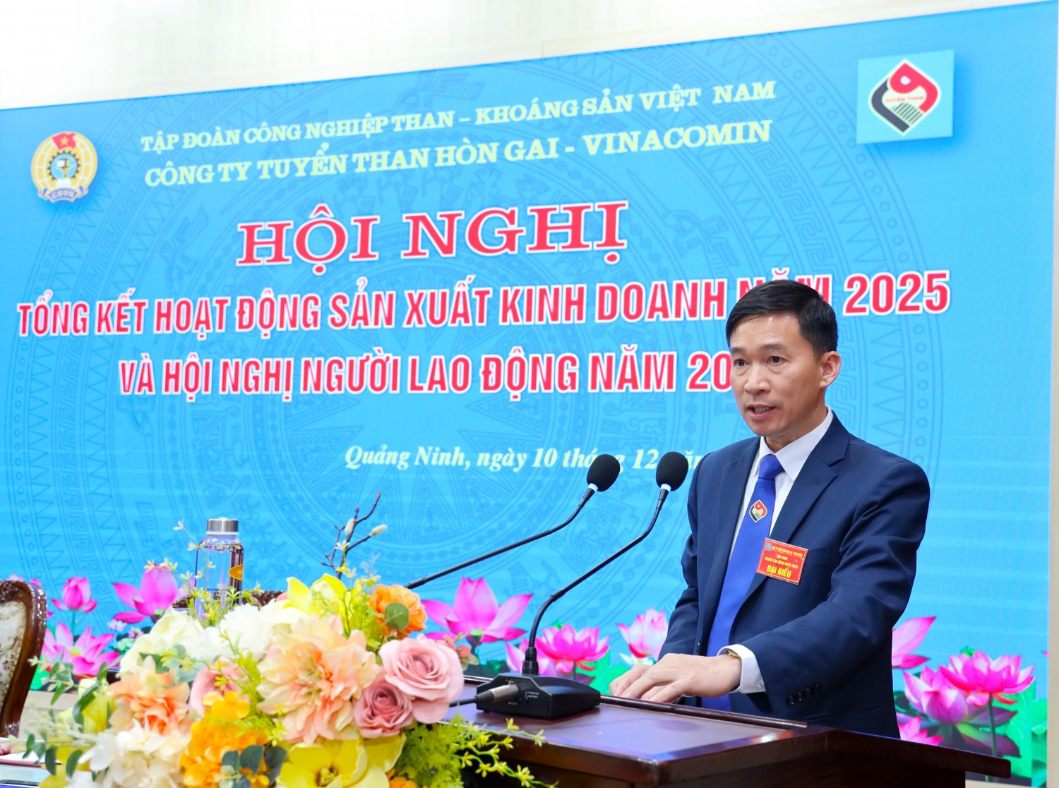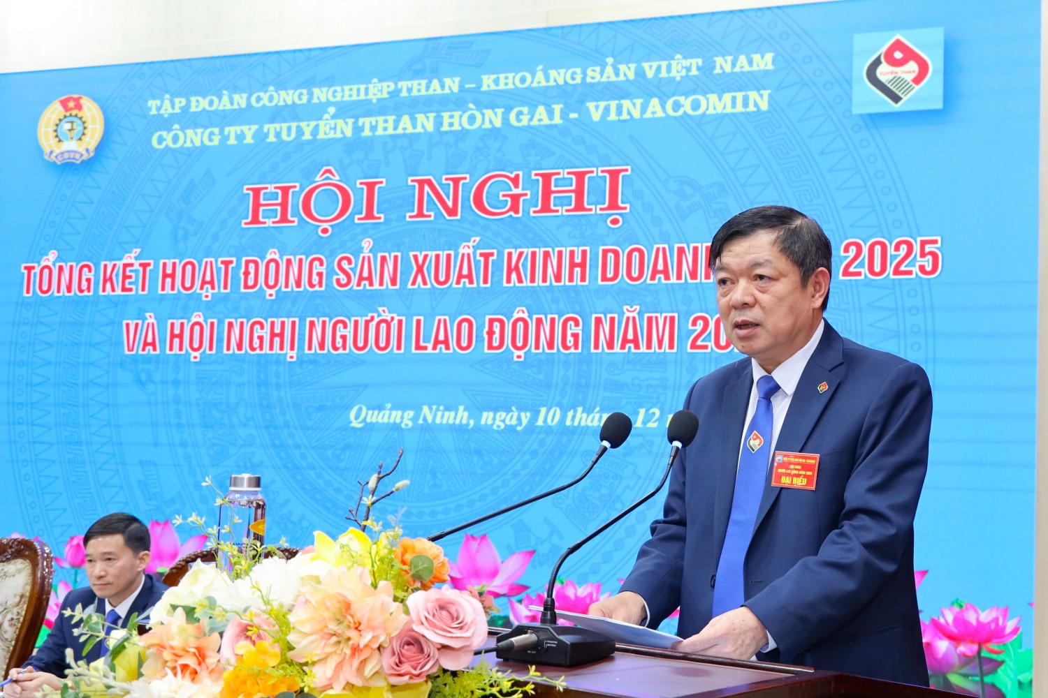 Chiều ngày 10/12, Công ty Tuyển than Hòn Gai - Vinacomin tổ chức Hội nghị tổng kết hoạt động sản xuất kinh doanh năm 2025 và Hội nghị người lao động năm 2026. Dự Hội nghị có đồng chí Nguyễn Hoàng Trung - Thành viên HĐTV Tập đoàn TKV; đồng chí Nguyễn Thị Minh - Phó Chủ tịch Công đoàn TKV, lãnh đạo Văn phòng Đảng ủy, các Ban chuyên môn của Tập đoàn; Ban lãnh đạo Công ty cùng 197 đại biểu đại diện cho hơn 1.260 cán bộ, công nhân, người lao động.