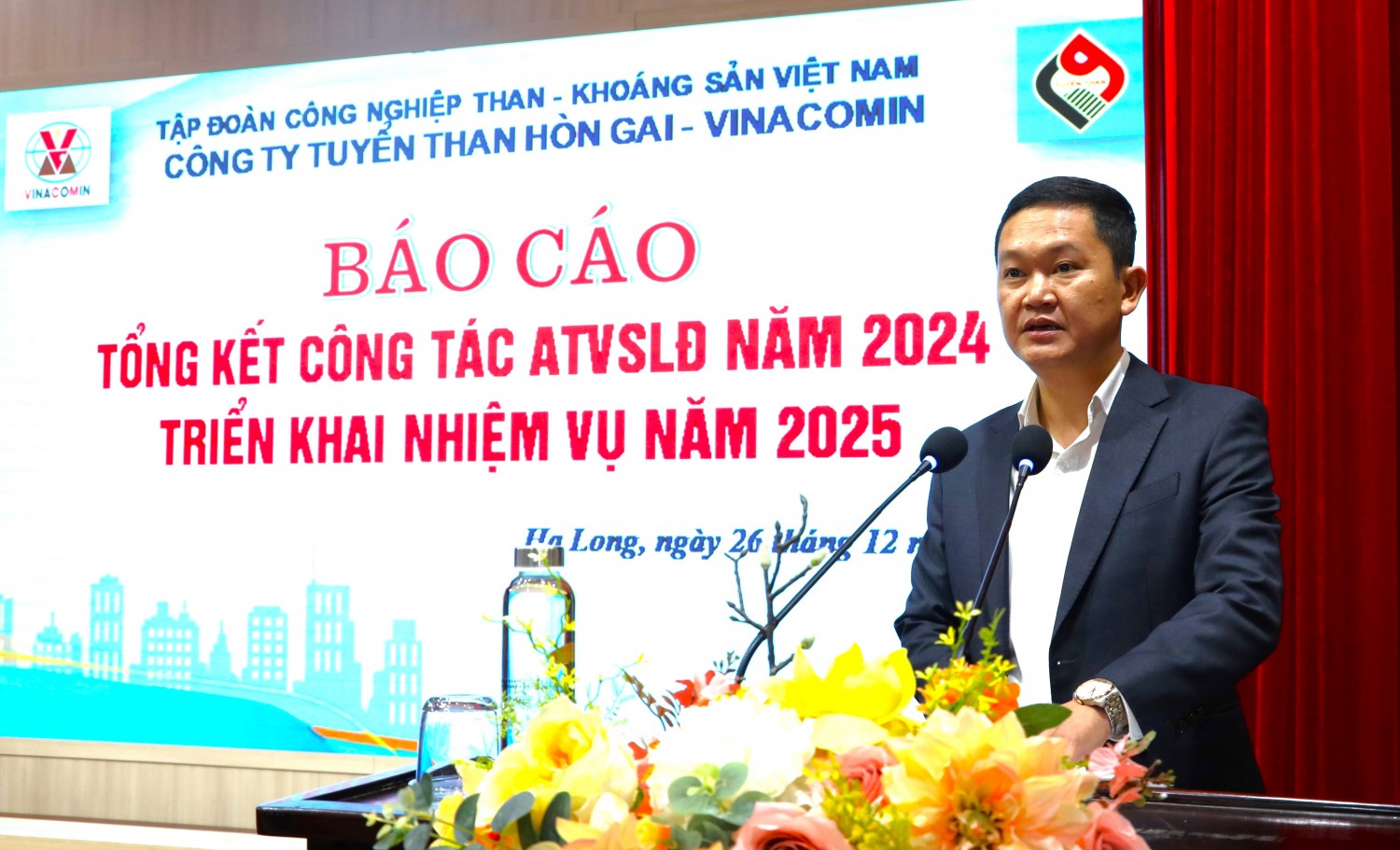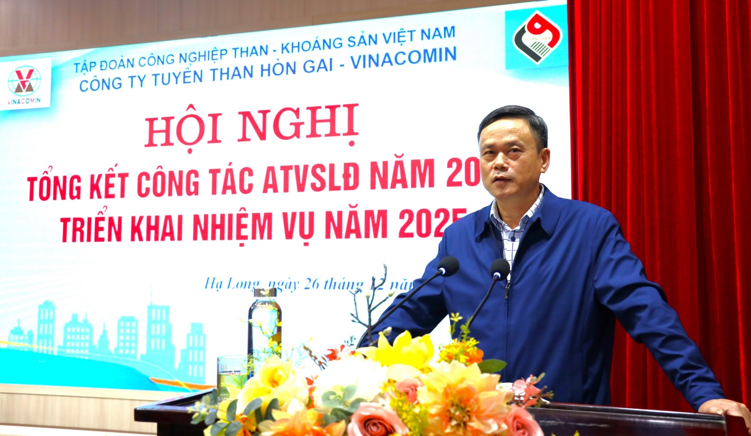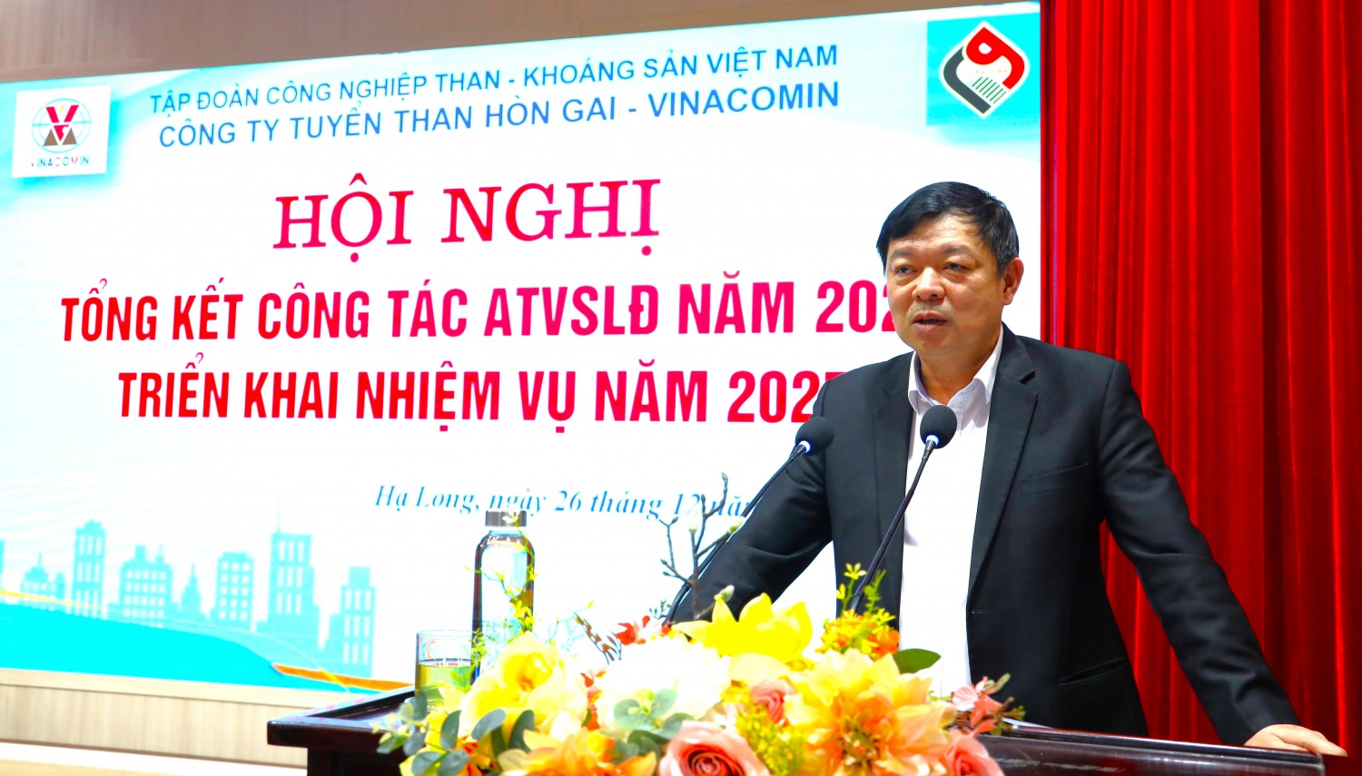 Hội nghị được nghe đồng chí Đỗ Ngọc Tú - Phó giám đốc phụ trách công tác ATVSLĐ báo cáo kết quả thực hiện công tác an toàn năm 2024 và các giải pháp thực hiện trong năm 2025.Theo đó, năm 2024, công tác ATVSLĐ đã được Đảng ủy, ban lãnh đạo Công ty, các phòng chuyên môn, đơn vị sản xuất đặc biệt quan tâm, thường xuyên kiểm tra, đôn đốc, nhắc nhở và có nhiều biện pháp cụ thể nhằm giảm thiểu nguy cơ mất an toàn. Ngoài ra, Công ty đã triển khai thực hiện tốt các nội dung về công tác huấn luyện, kiểm tra, công tác tuyên truyền, chăm lo sức khỏe cho người lao động; công tác PCCC được đảm bảo; công tác môi trường từng bước được cải thiện. Đặc biệt trong năm 2024 Công ty không để xảy ra TNLĐ, TNGT trên đường đi làm và không có sự cố mất an toàn loại I, loại II. Đồng thời, từng bước hoàn thành các mục tiêu, giải pháp các nội dung chiến lược ATVSLĐ từ đó xây dựng uy tín và thương hiệu cho Công ty Tuyển than Hòn Gai - Vinacomin, tạo môi trường làm việc an toàn và tốt nhất cho người lao động.