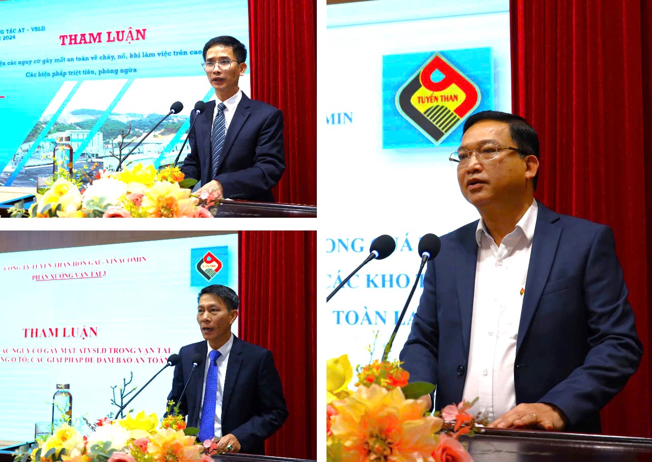 Ảnh: Đại diện các Phân xưởng Cơ khí, Vận tải 3, Làng khánh 2 tham luận về các các nguy cơ gây mất an toàn và biện pháp triệt tiêu phòng ngừa