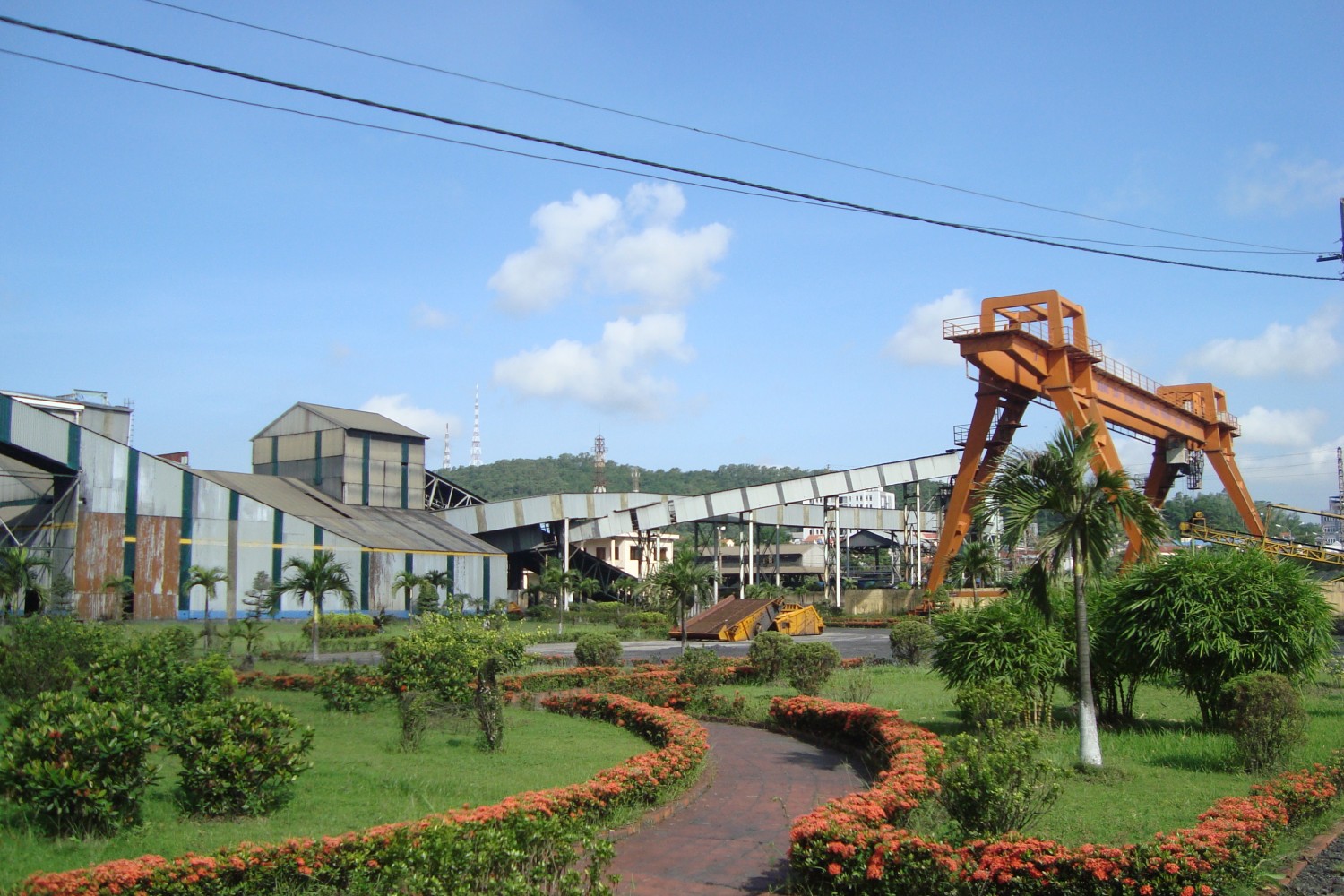 Một góc xen kẽ giữa cây canh và nhà máy sàng tuyển tại khu vực Nam Cầu Trắng