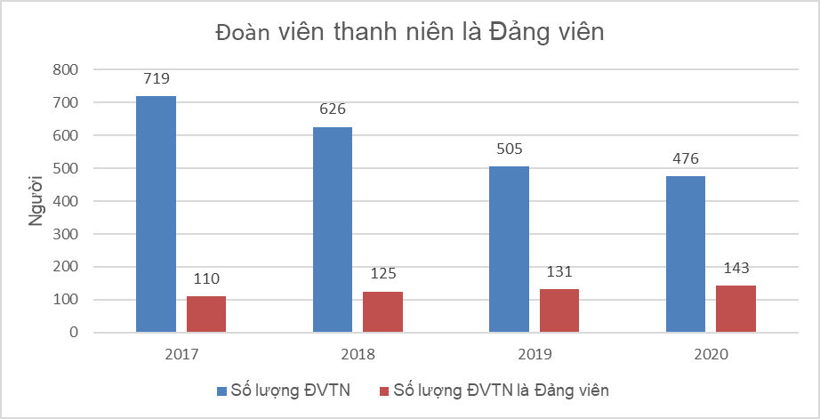 Cuộc vận động đã thấm sâu vào ý thức của ĐVTN Công ty, làm chuyển biến đạo đức, lối sống cho ĐVTN và làm giác ngộ trong ĐVTN về Đảng Cộng sản Việt Nam, xây dựng, hình thành động cơ, thái độ phấn đấu vào Đảng đúng đắn cho ĐVTN. Trong khi số lượng ĐVTN Công ty giảm dần qua các năm do Công ty triển khai thực hiện chương trình tái cấu lao động, thay đổi mô hình tổ chức sản xuất, không tuyển mới lao động nhưng % số lượng ĐVTN được kết nạp Đảng qua các năm tăng đều. Điều đó khẳng định sự phấn đấu không ngừng vì lý tưởng cách mạng của một bộ phận không nhỏ thanh niên trong ĐVTN Công ty thể hiện trong biểu đồ như sau: Biểu đồ Đoàn viên thanh niên là Đảng viên
