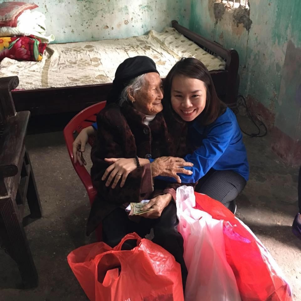 Hình ảnh chị Đoàn Thị Thu Hoà trong một lần đi thiện nguyện