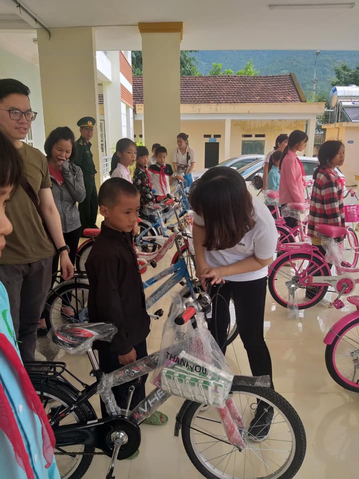 Hình ảnh trao tặng xe đạp cho các bé trường bán trú Đồng Văn