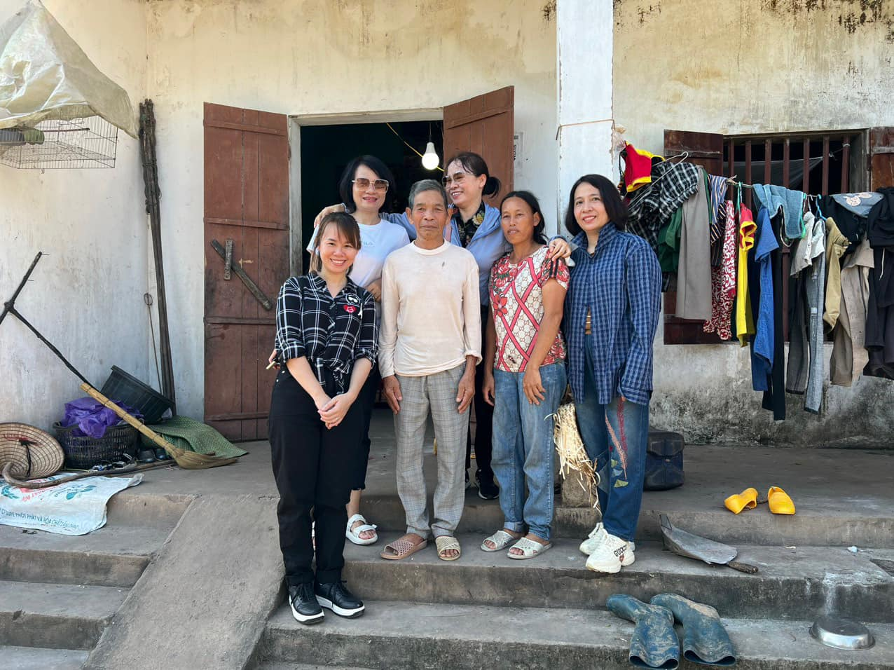 Hình ảnh chị Hoà (áo đen kẻ) cùng nhóm thiện nguyện đến thăm nhà hộ dân có hoàn cảnh khó khăn