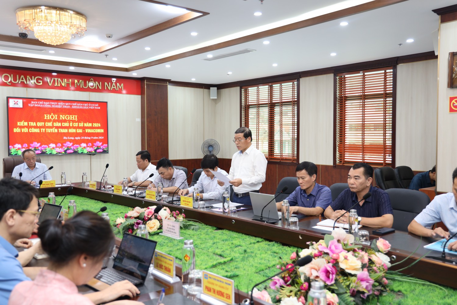 Chiều ngày 24/9/2024, Đoàn kiểm tra của Ban Chỉ đạo Quy chế dân chủ ở cơ sở do đồng chí Khuất Mạnh Thắng - Phó Bí thư Thường trực Đảng ủy Tập đoàn Công nghiệp Than - Khoáng sản Việt Nam làm trưởng đoàn đã làm việc tại Công ty Tuyển than Hòn Gai - Vinacomin.