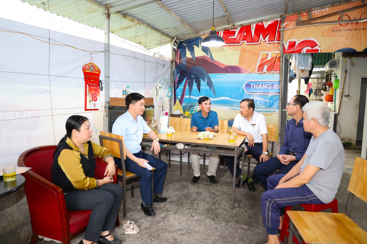 Đ/c Bùi Hữu Lý - Chủ tịch Công đoàn Công ty, cùng đoàn khảo sát tại nhà của chị Nguyễn Thị Mai Liên - PX Làng khánh 2