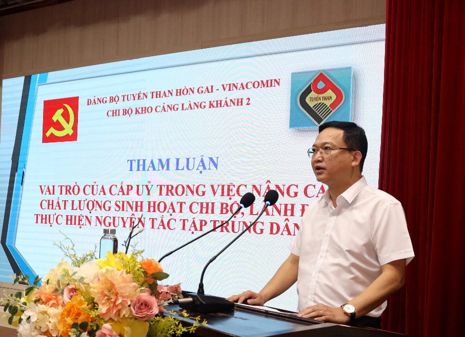 Kết luận hội nghị, đồng chí Phạm Hồng Thanh - Bí thư Đảng uỷ, Giám đốc Công ty đã bày tỏ sự quan tâm sát sao chỉ đạo của Đảng ủy Tập đoàn TKV và biểu dương, ghi nhận những kết quả đã đạt được của các tổ chức chính trị, cán bộ, đảng viên, người lao động trong Công ty đã rất cố gắng đẩy mạnh phong trào thi đua lao động sản xuất góp phần cùng Đảng bộ Công ty thực hiện thắng lợi nhiệm vụ quý II, 06 tháng đầu năm 2024. Đồng chí cũng đánh giá cao ý kiến tham luận của Chi bộ Phân xưởng Làng khánh 2, Phòng Điều hành sản xuất về những lĩnh vực quan trọng trong thực hiện nhiệm vụ cấp bách của Công ty hiện nay.
