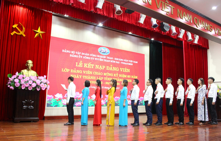 Chiều ngày 31/8/2023, Đảng ủy Công ty Tuyển than Hòn Gai đã tổ chức lễ kết nạp đảng viên, lớp đảng viên Chào mừng 60 năm ngày thành lập Tỉnh Quảng Ninh (30/10/1963 - 30/10/2023) cho 13 quần chúng ưu tú. Đây là những cá nhân tiêu biểu về phẩm chất chính trị, đạo đức lối sống và trong công tác chuyên môn được các Chi bộ lựa chọn, giới thiệu kết nạp vào Đảng đợt 2/9.