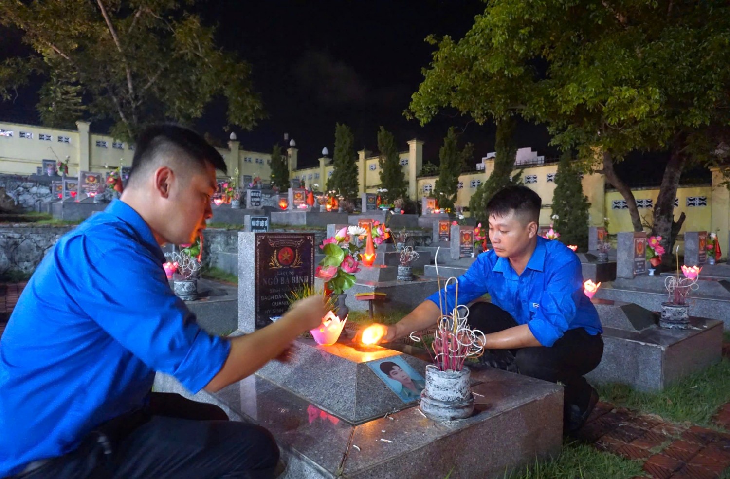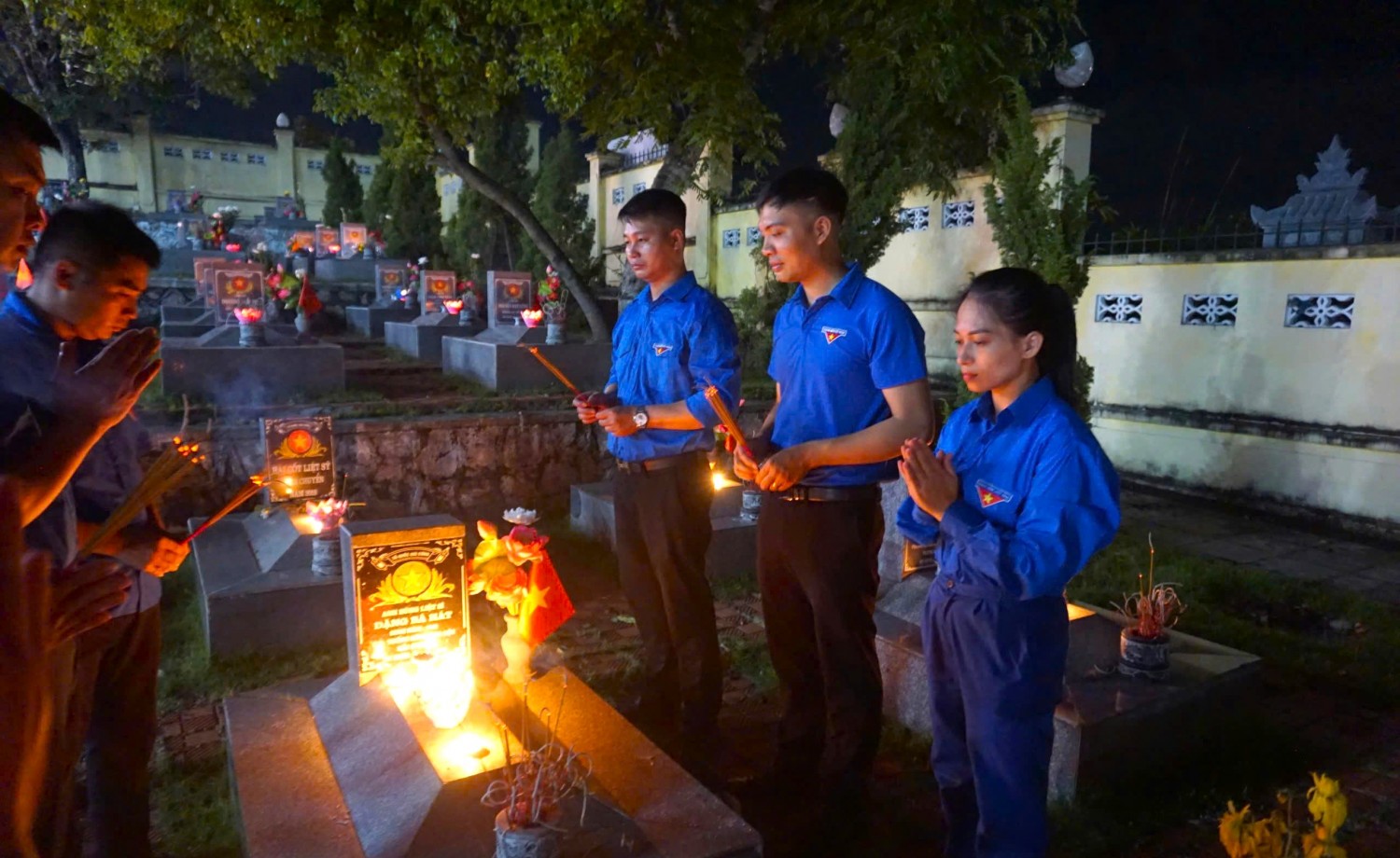 Ảnh: Đoàn viên thanh niên Công ty ra quân dọn vệ sinh môi trường, chăm sóc các phần mộ liệt sỹ và mộ vô danh tại Nghĩa trang liệt sĩ phường Hà Tu