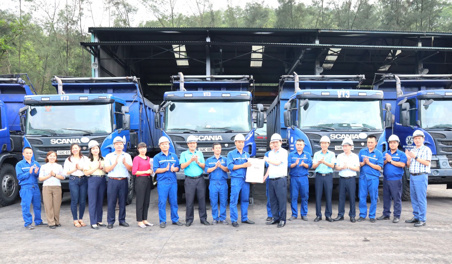 Các đồng chí lãnh đạo Công đoàn TKV trao qua cho đơn vị