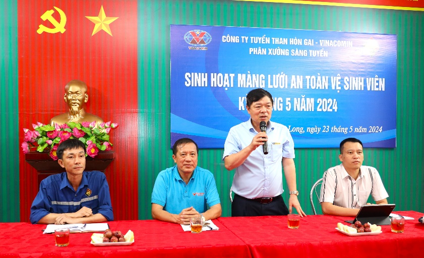 5. Ngày 23/5/2024 đồng chí Bí thư Đảng ủy, Giám đốc và Chủ tịch Công đoàn Công ty cùng các đồng chí thường trực Công đoàn, Phụ trách An toàn Công ty đã dự buổi sinh hoạt màng lưới ATVSV tại Phân xưởng Sàng tuyển và đi tặng quà nhân tháng Công nhân, tháng ATVSLĐ tại các đơn vị, tổ sản xuất tiêu biểu xuất sắc