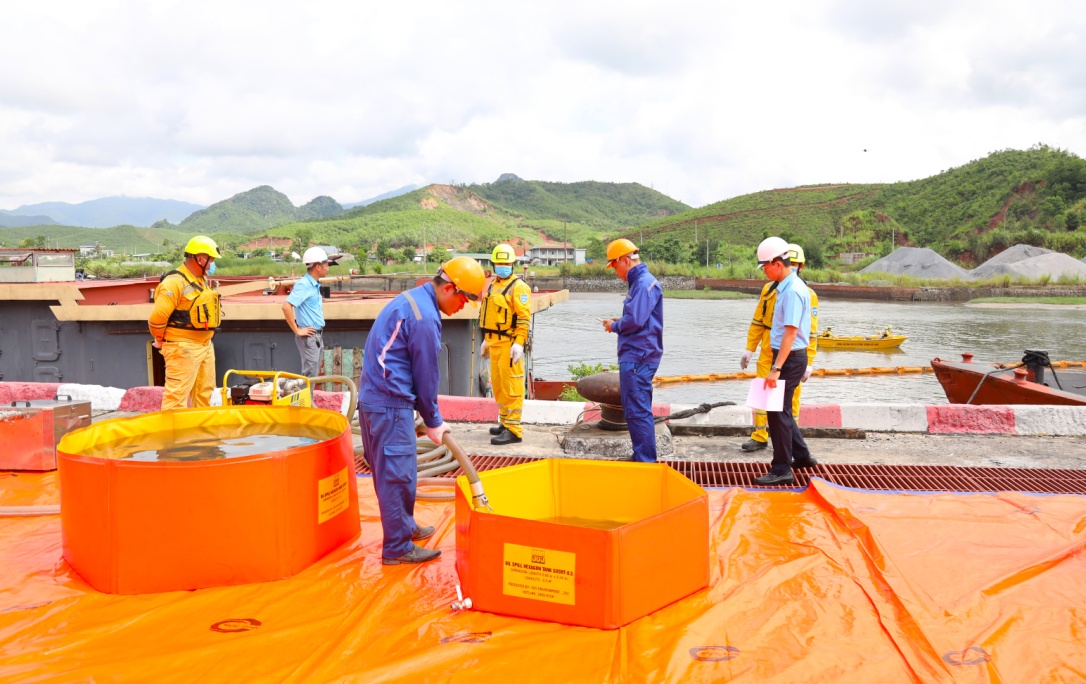 Sau hơn 60 phút nỗ lực khẩn trương, lực lượng tham gia đã hoàn thành tốt các yêu cầu đề ra. Các đơn vị phối hợp đã nhanh chóng thả phao quây chặn dầu, dùng xe phun nước làm mát động cơ, vận hành thiết bị chuyên dụng để vớt, bơm hút, thu gom và xử lý lượng dầu tràn đúng quy định, không để dầu loang rộng ra môi trường xung quanh.
