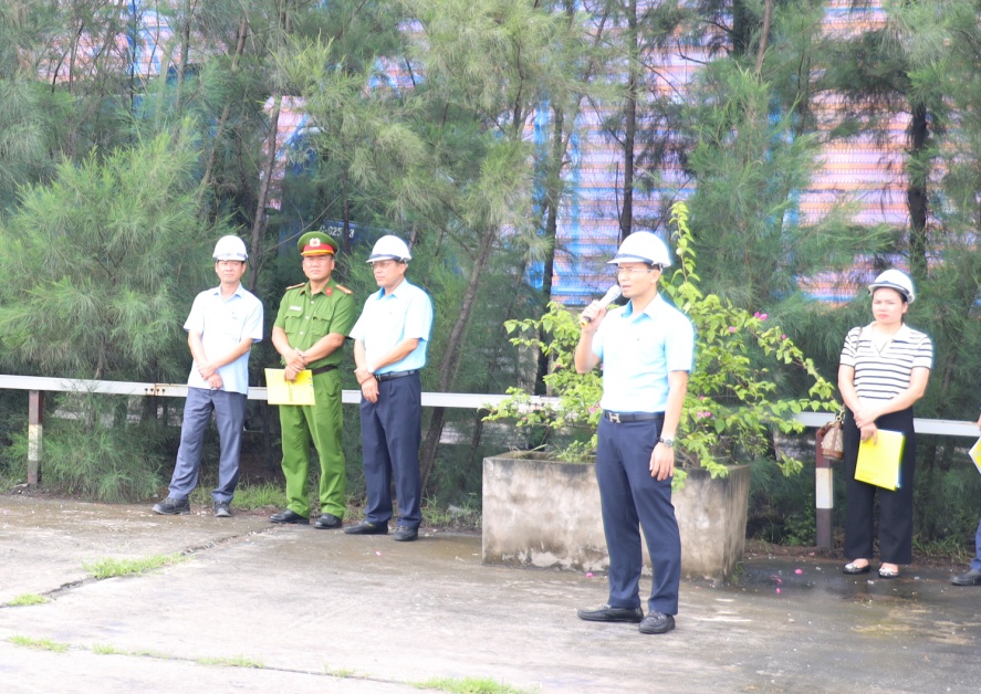 Đồng chí Lê Thanh Hoàn - Phó giám đốc, Trưởng ban chỉ huy ứng phó sự cố tràn dầu Công ty phát biểu khai mạc buổi diễn tập