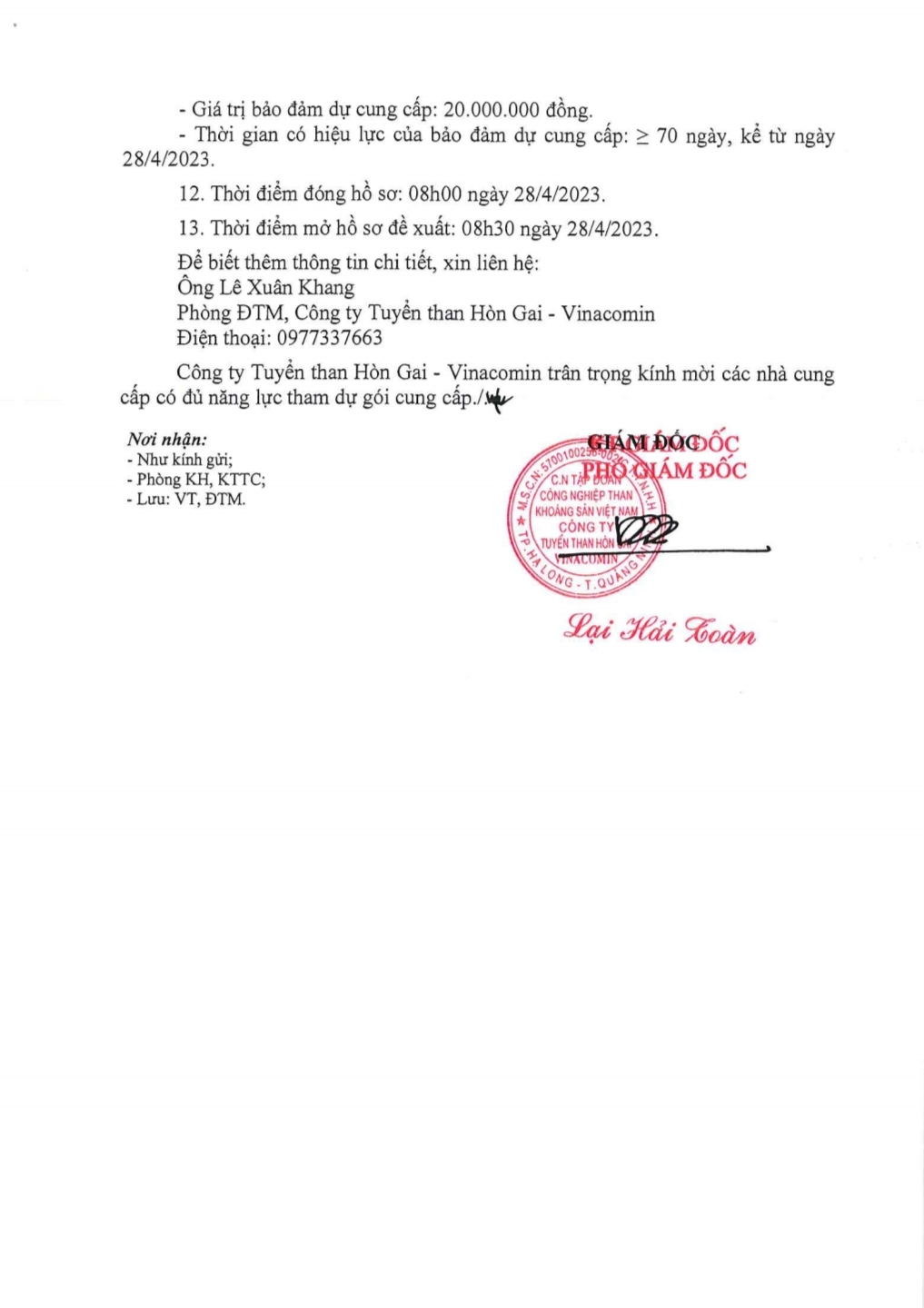 Thông báo mời chào hàng cạnh tranh gói cung cấp: Sửa chữa mặt tuyến đường từ Than điện về Làng khánh 1