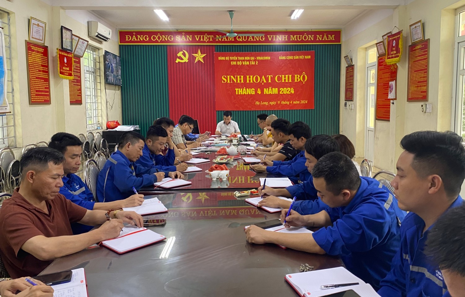 Quý I/2024, Chi bộ Vận tải 2 đã lãnh chỉ đạo đơn vị thực hiện hoàn thành xuất sắc các chỉ tiêu, kế hoạch được giao cụ thể: Sản lượng vận chuyển 4.539.000/ 4.050.000 T/km kế hoạch đạt 112 %; Chi phí giao khoán quý I thực hiện 18.900/19.400 triệu đồng, đạt 97,4%, giá trị tiết kiệm trên 500 triệu đồng. CBCNV của phân xưởng đã chấp hành nghiêm chỉnh các quy định của Công ty, của Tập đoàn và pháp luật, đảm bảo AT-VSLĐ trong sản xuất; ngày công, năng suất lao động, tiền lương và thu nhập của CBCNV được đảm bảo. Các tổ chức Công đoàn, ĐTN, Hội CCB trong phân xưởng đã phát huy tốt vai trò, chức năng nhiệm vụ của mình, đẩy mạnh công tác phổ biến, tuyên truyền, quán triệt, triển khai đồng bộ các nghị quyết của Công ty.