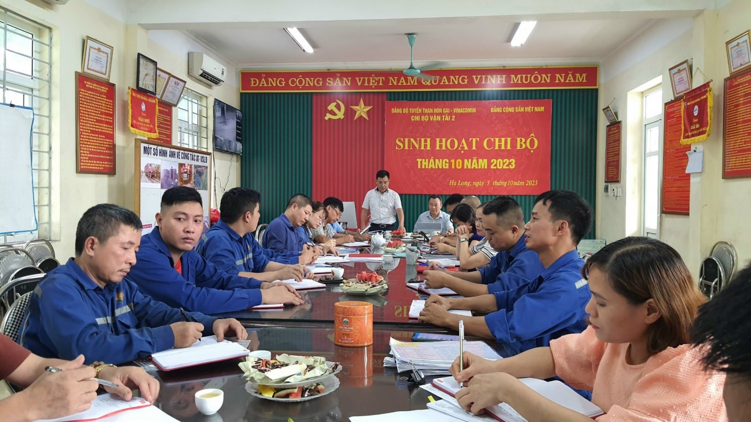 Chiều ngày 03/10/2023, tại hội trường Phân xưởng. Chi bộ Vận tải 2 - Đảng bộ Công ty Tuyển than Hòn Gaitổ chức họp sơ kết công tác Đảng 9 tháng, triển khai phương hướng nhiệm vụ tháng 10 năm 2023. Đồng chí Dương Tiến Hòa - Bí thư Chi bộ, Quản đốc Phân xưởng chủ trì cuộc họp
