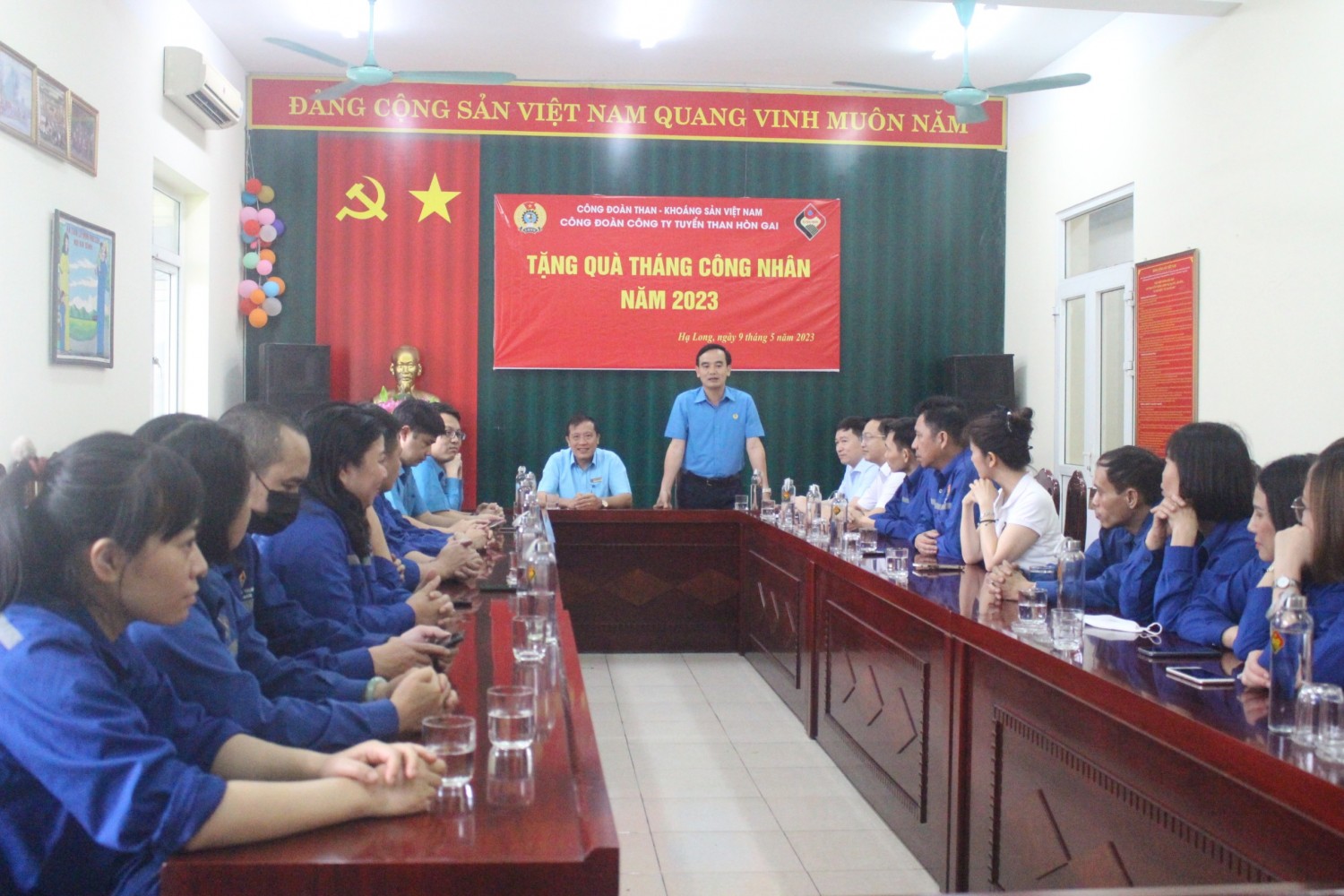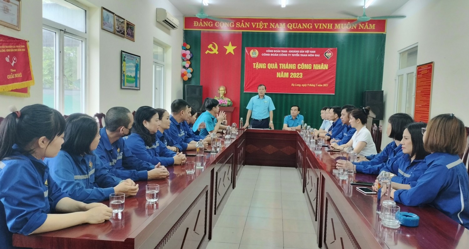 Tại khai trường sản xuất của Công ty Tuyển than Hòn Gai - Vinacomin, trong đầu ca sản xuất của ca 1, đồng chí Lê Thanh Xuân - Chủ tịch Công đoàn TKV đã đến thăm, tặng quà động viên cán bộ đoàn viên, công nhân viên chức lao động Phân xưởng Kho Cảng Làng Khánh 2, Công ty Tuyển than Hòn Gai - Vinacomin. Đây là một trong các đơn vị tiêu biểu xuất sắc của Công ty Tuyển than Hòn Gai được Công đoàn TKV đến thăm, tặng quà nhân dịp Tháng Công nhân năm 2023. Cùng đi với đoàn có đồng chí Bùi Hữu Lý - Chủ tịch Công đoàn và các đồng chí thường trực, nữ công Công đoàn Công ty