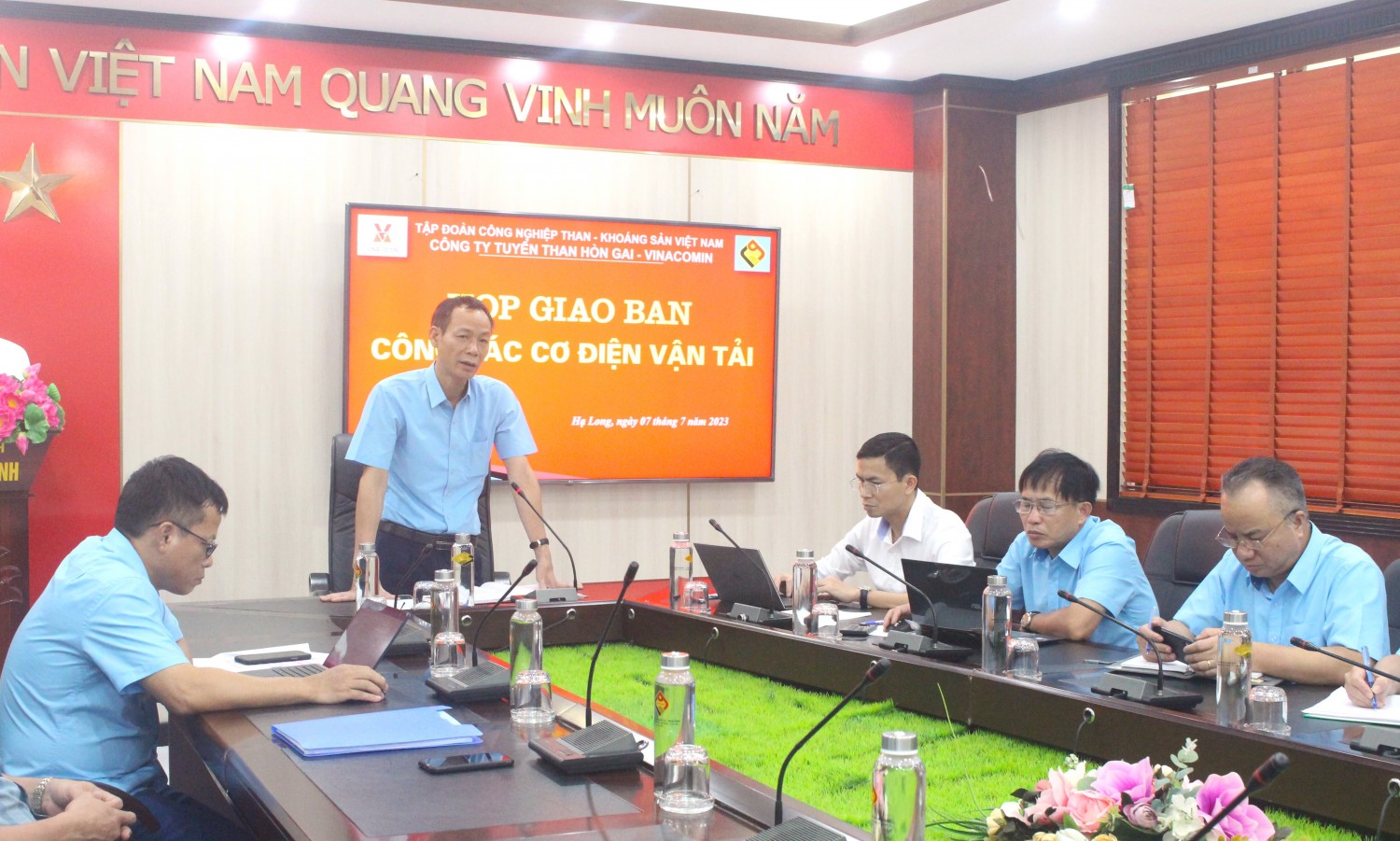 Ngày 07/7/2023, Công ty Tuyển Than Hòn Gai đã tổ chức Họp Giao ban Công tác Cơ điện - Vận tải kỳ tháng 6, triển khai nhiệm vụ tháng 7 và Quý III năm 2023. Đồng chí Lại Hải Toàn - Phó Giám đốc Công ty chủ trì cuộc họp.
