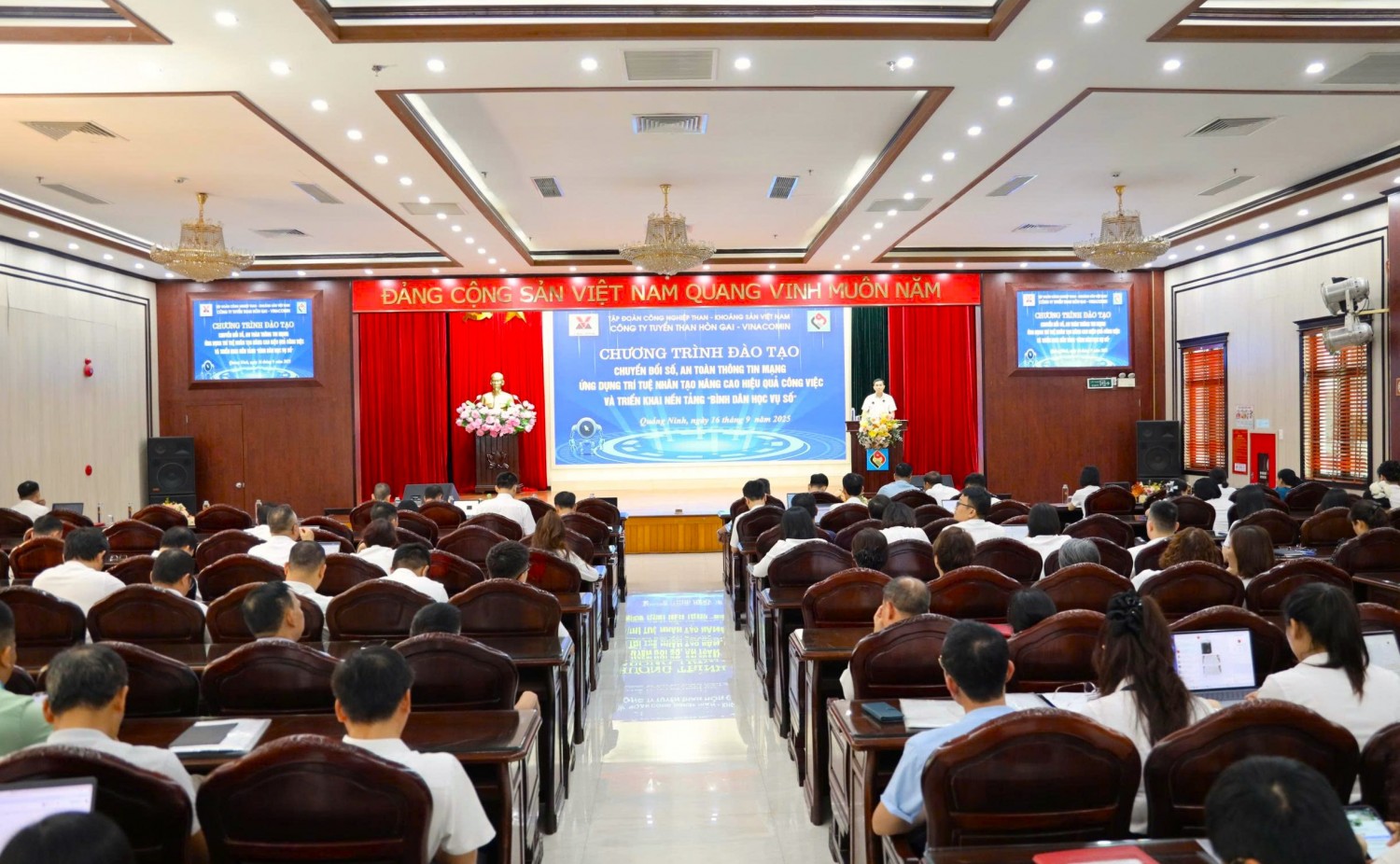 Ngày 16/9, Công ty Tuyển than Hòn Gai - Vinacomin đã phối hợp với Công ty Cổ phần Tư vấn Quản lý MBO tổ chức khai mạc Chương trình đào tạo về chuyển đổi số; an ninh, an toàn thông tin mạng và ứng dụng AI nhằm nâng cao hiệu quả công việc, đồng thời triển khai nền tảng “Bình dân học vụ số” cho 159 học viên là cán bộ lãnh đạo điều hành, chuyên viên và người lao động thuộc các phòng, phân xưởng trong toàn Công ty.