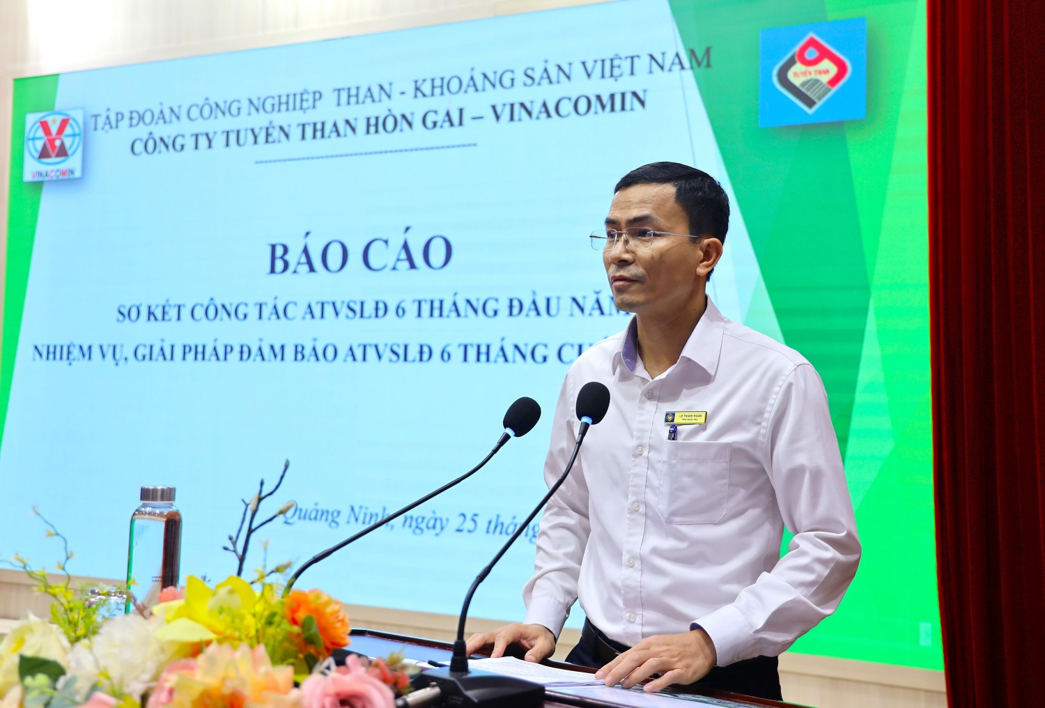 Đồng chí Lê Thanh Hoàn - Phó Giám đốc phụ trách công tác an toàn báo cáo kết quả thực hiện công tác ATVSLĐ 6 tháng đầu năm 2025