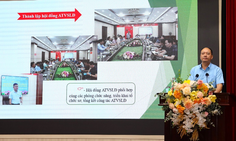 Đồng chí Đồng Văn Hưng - Phó trưởng phòng CVA (phụ trách An toàn) trình bày báo cáo kết quả thực hiện công tác AT-VSLĐ quý I/2024