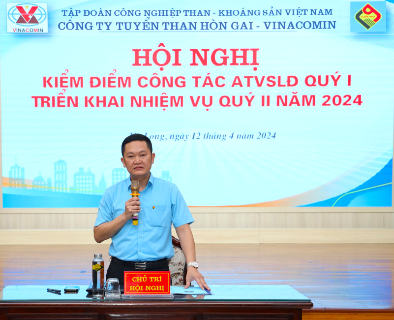 Chiều ngày 12/4, Công ty Tuyển than Hòn Gai - Vinacomin đã tổ chức Hội nghị sơ kết công tác AT-VSLĐ quý I, triển khai công tác quý II năm 2024. Tham dự Hội nghị có các đồng chí lãnh đạo Công ty, Trưởng phòng, Quản đốc và cán bộ, nhân viên làm công tác AT-VSLĐ tại các đơn vị. Đồng chí Đỗ Ngọc Tú - Phó giám đốc, Chủ tịch Hội đồng AT-VSLĐ Công ty, chủ trì Hội nghị.