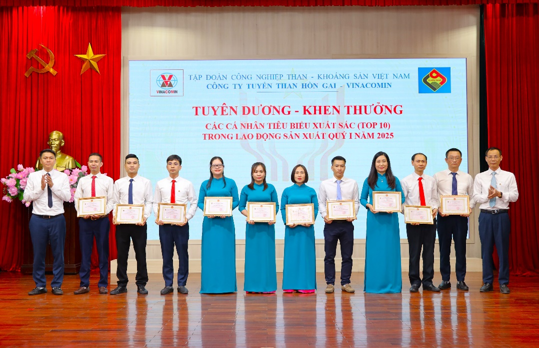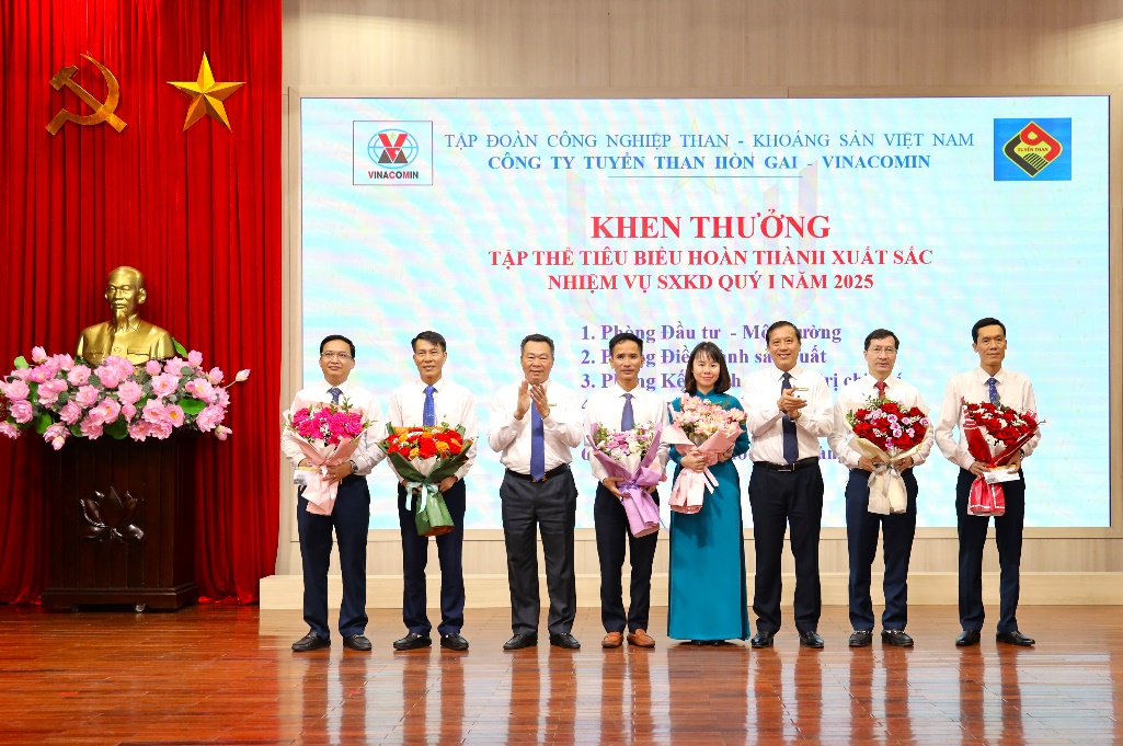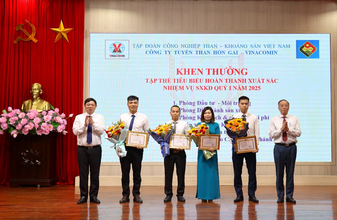Hội nghị Công ty cũng đã trao tặng Bằng khen của Đảng ủy Khối Doanh nghiệp Trung ương cho 02 đồng chí, Giấy khen của Đảng ủy TKV cho 04 đảng viên hoàn thành xuất sắc nhiệm vụ 5 năm (2020-2024); khen thưởng 06 tập thể hoàn thành tốt kế hoạch quý I và trao Giấy khen của Giám đốc Công ty cho 10 cá nhân đạt danh hiệu TOP 10 Quý I/2025. Đồng thời cũng tặng hoa, tri ân những đóng góp của đồng chí Đỗ Ngọc Tú - Nguyên là UV BCH Đảng bộ, Phó Giám đốc Công ty chuyển công tác và đồng chí Dương Tiến Hòa - Nguyên Bí thư Chi bộ, Quản đốc Phân xưởng Vận tải 2 nghỉ chế độ. Hội đồng thi đua Khen thưởng Công ty đã phát động phong trao thi đua trong không khí phấn khởi, thể hiện quyết tâm cao của toàn thể CBCNV Công ty Tuyển than Hòn Gai - Vinacomin trong việc hoàn thành xuất sắc nhiệm vụ Quý II/2025, hướng tới một năm 2025 thành công, bứt phá toàn diện, vững vàng về đích, góp phần việc hoàn thành mục tiêu tăng trưởng của Tập đoàn trên 8% năm 2025.