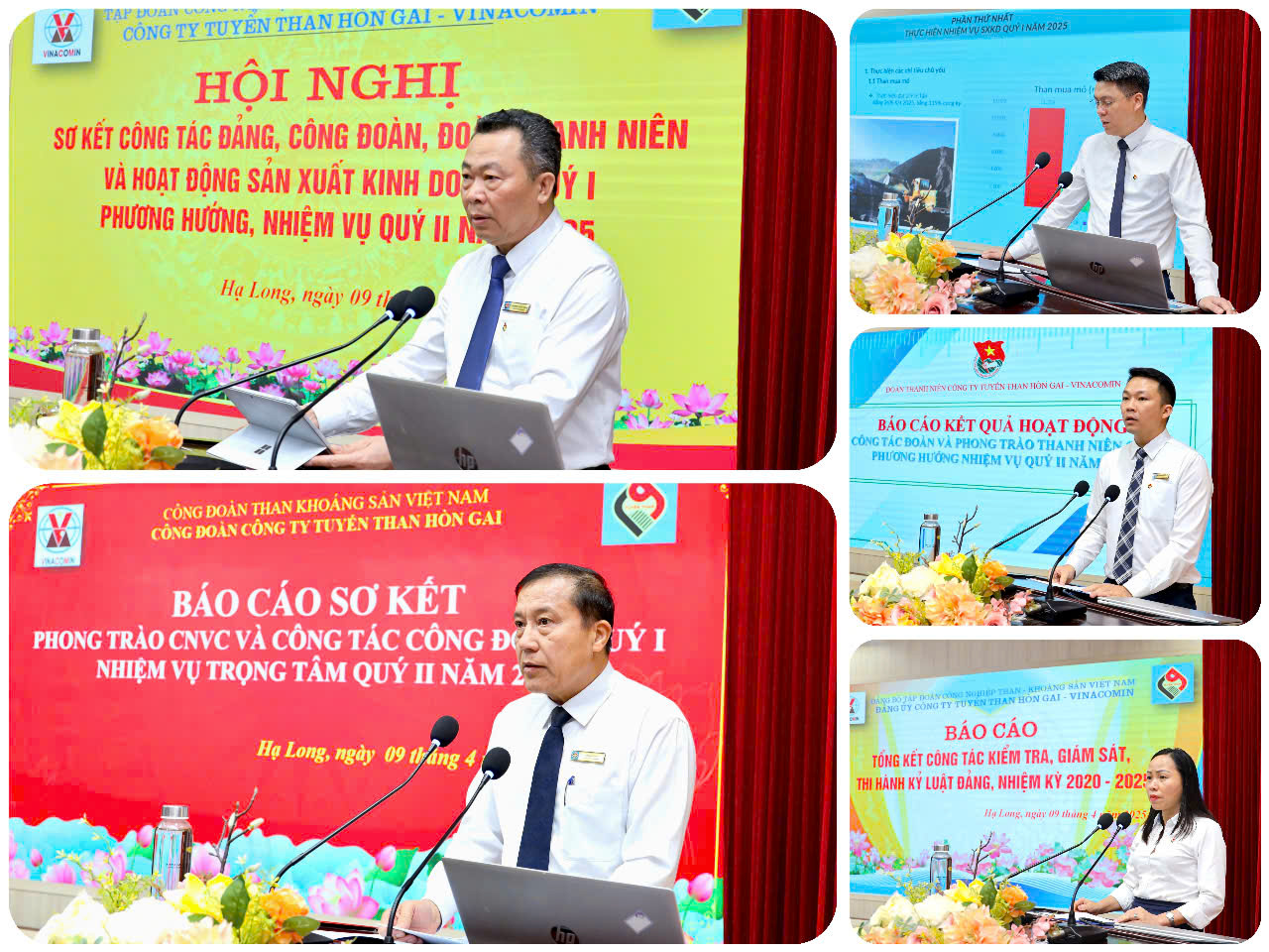 Tại Hội nghị, các đại biểu đã nghe các báo cáo sơ kết công tác Đảng, hoạt động của Công đoàn, Đoàn Thanh niên và kết quả sản xuất kinh doanh Quý I/2025; báo cáo tổng kết công tác kiểm tra, giám sát của Ủy ban Kiểm tra Đảng ủy Công ty; tham luận của đại diện Phân xưởng Làng Khánh 2. Các báo cáo đã nêu rõ những kết quả nổi bật trong bối cảnh còn nhiều khó khăn. Đảng ủy Công ty đã bám sát chỉ đạo của Đảng ủy TKV, ban hành các nghị quyết quan trọng để lãnh đạo, chỉ đạo toàn diện nhiệm vụ năm 2025, tổ chức thành công đại hội các chi bộ nhiệm kỳ 2025-2027 và chuẩn bị chu đáo các điều kiện để tổ chức Đại hội Đảng bộ Công ty lần thứ XXXI, nhiệm kỳ 2025-2030. Công đoàn Công ty tiếp tục làm tốt công tác chăm lo đời sống người lao động, tăng cường tuyên truyền, phổ biến pháp luật trong CNVCLĐ. Đoàn Thanh niên phát huy vai trò xung kích, tổ chức hiệu quả Tháng Thanh niên, đẩy mạnh tuyên truyền về công tác an toàn, vệ sinh lao động và bảo vệ môi trường. Về sản xuất kinh doanh, trong Quý I/2025, Công ty đã hoàn thành hơn 25% kế hoạch năm, đảm bảo an toàn lao động, giữ vững an ninh trật tự, môi trường làm việc ổn định, thu nhập và việc làm của người lao động được duy trì. Công tác tái cơ cấu, tinh giản lao động tiếp tục được triển khai đồng bộ, đúng định hướng chỉ đạo của Tập đoàn.