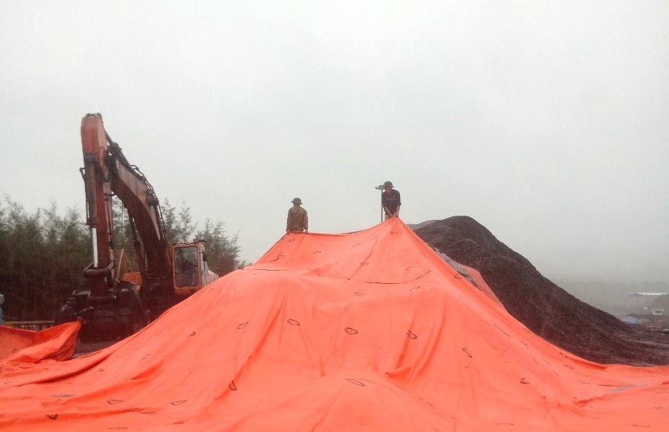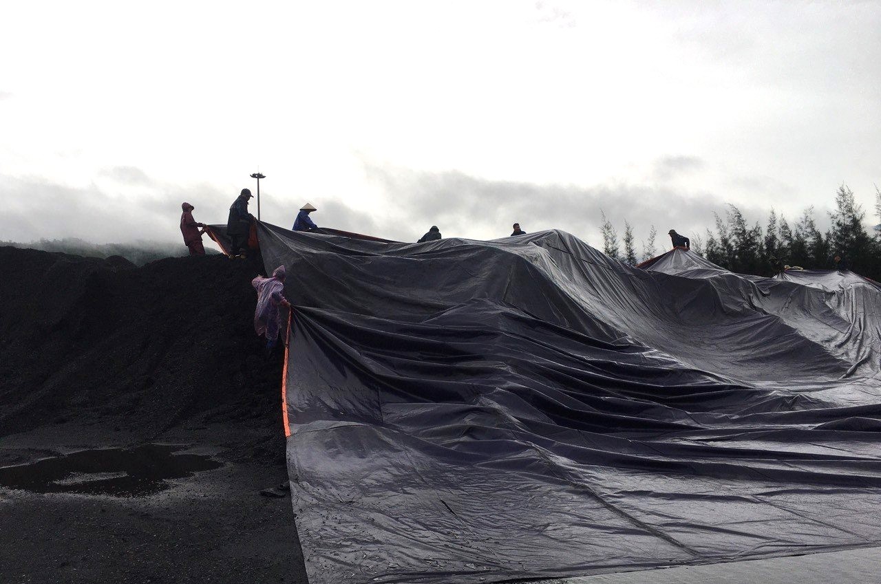 Công ty tổ chức triển khai ngay phương án che bạt cho các kho than tránh bị sạt lở và trôi than