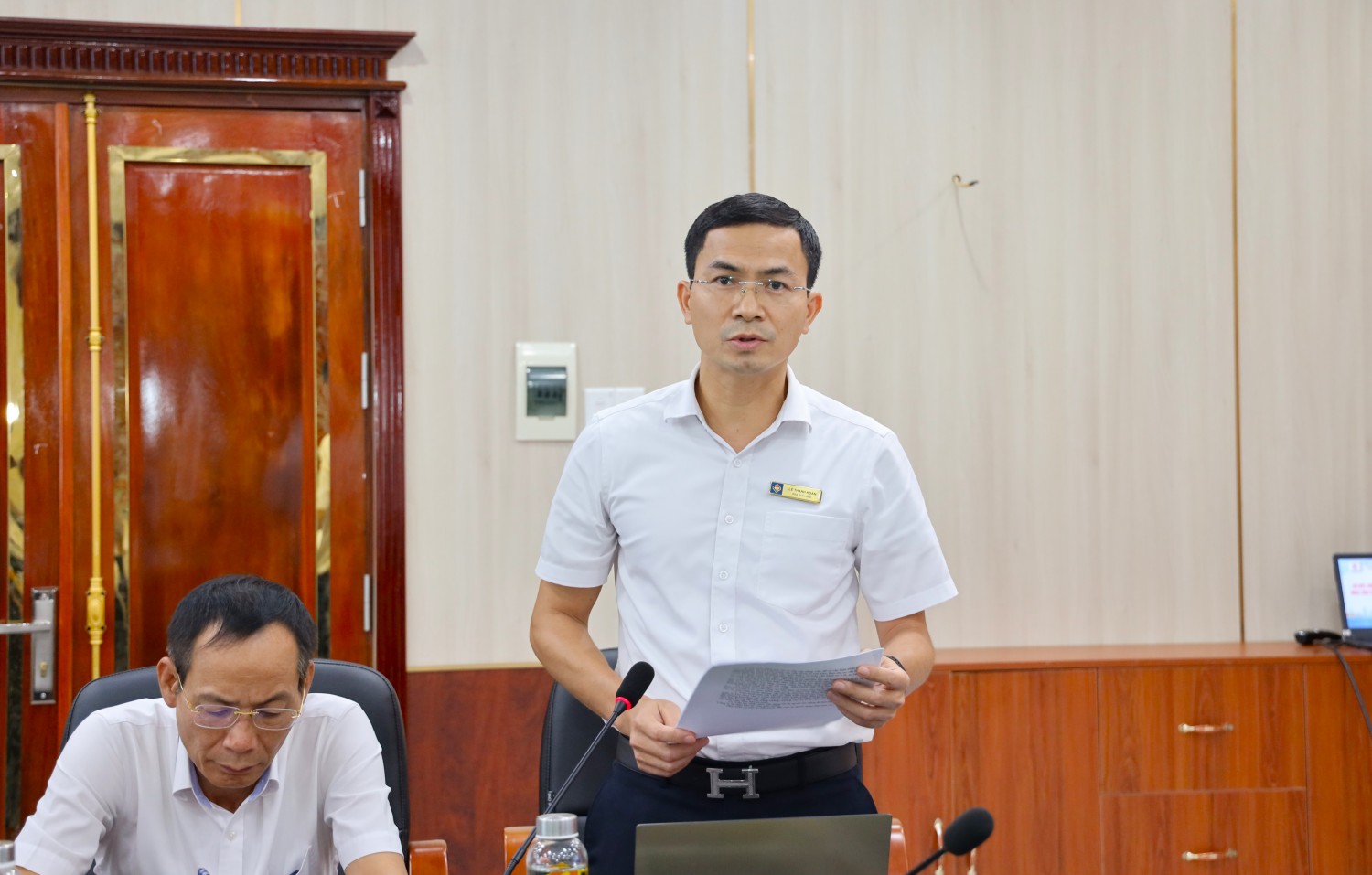 Đồng chí Lê Thanh Hoàn - Phó Giám đốc, Chủ tịch Hội đồng ATVSLĐ báo cáo kết quả thực hiện công tác ATVSLĐ Quý III, 9 tháng đầu năm 2025