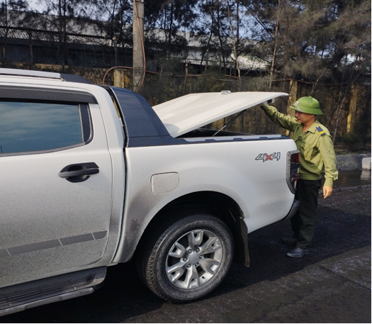 Lực lượng bảo vệ kiểm soát phương tiện vận chuyển than qua trạm
