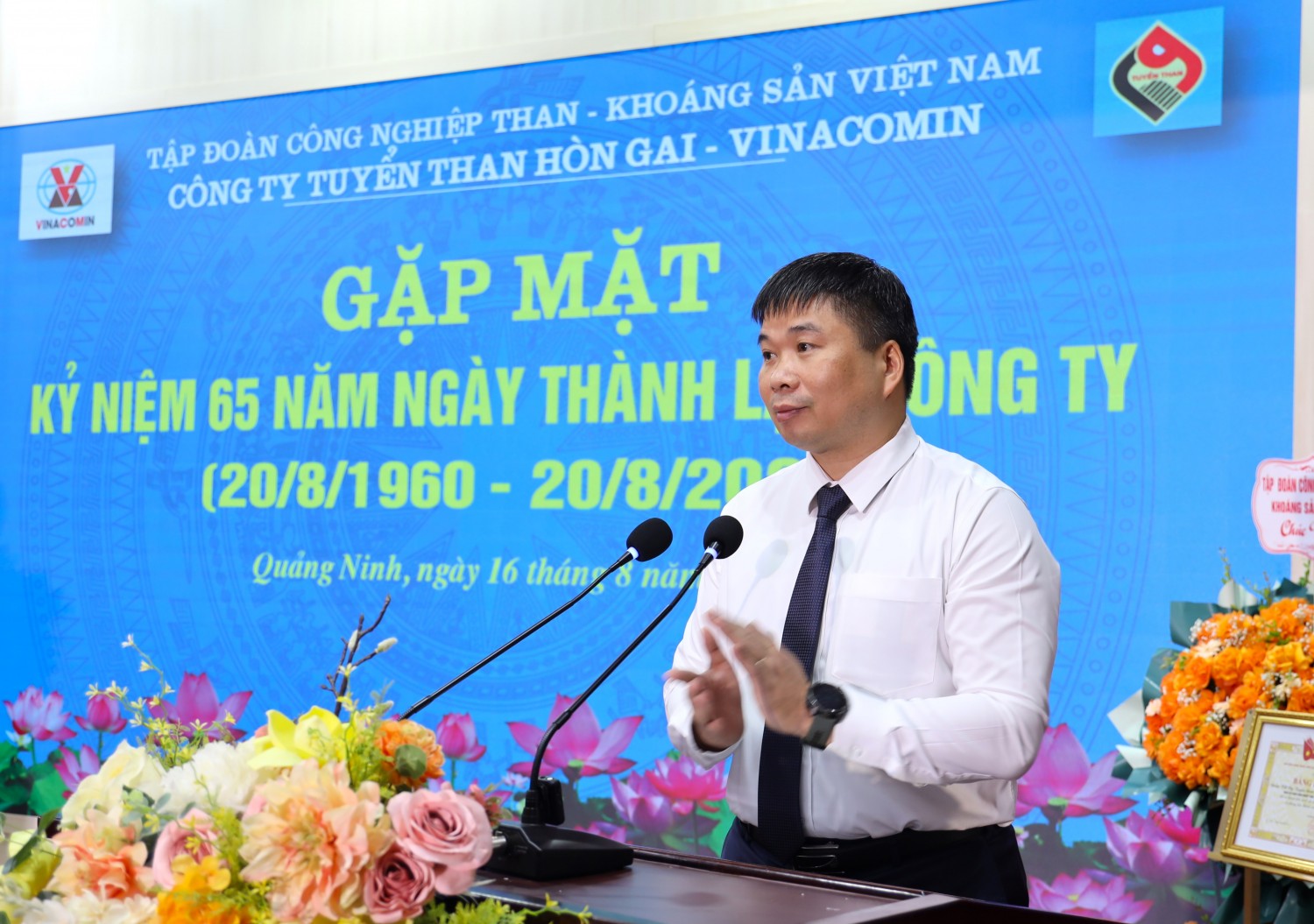 Thay mặt lãnh đạo Tập đoàn, Phó Tổng giám đốc Nguyễn Văn Tuân đã chúc mừng biểu dương những thành tựu vẻ vang mà Công ty Tuyển than Hòn Gai đạt được trong 65 năm xây dựng và phát triển. Tập thể cán bộ, công nhân viên tiếp tục phát huy truyền thống “Kỷ luật và Đồng tâm”, biến thách thức thành cơ hội, đẩy nhanh tiến độ các dự án đầu tư trọng điểm, tiên phong trong ứng dụng khoa học, công nghệ, tự động hóa, chuyển đổi số vào sản xuất.Phó Tổng giám đốc nhấn mạnh, Công ty cần gắn sản xuất kinh doanh với an toàn lao động, bảo vệ môi trường, chăm lo đời sống người lao động; coi đây vừa là yêu cầu sản xuất, vừa là giá trị nhân văn, yếu tố sống còn cho sự phát triển bền vững. Đồng thời, chú trọng xây dựng nguồn nhân lực chất lượng cao, đội ngũ cán bộ “vừa hồng, vừa chuyên”, có bản lĩnh và trình độ để làm chủ công nghệ hiện đại.Đồng chí cũng đề nghị Công ty không ngừng cải thiện đời sống vật chất, tinh thần cho người lao động; phát huy vai trò của tổ chức Công đoàn và các đoàn thể; xây dựng môi trường làm việc văn minh, hiện đại. Đặc biệt, phải xây dựng Đảng bộ Công ty trong sạch, vững mạnh toàn diện, hạt nhân lãnh đạo, trung tâm đoàn kết, phát huy sức mạnh tập thể để hoàn thành thắng lợi mọi nhiệm vụ được giao.