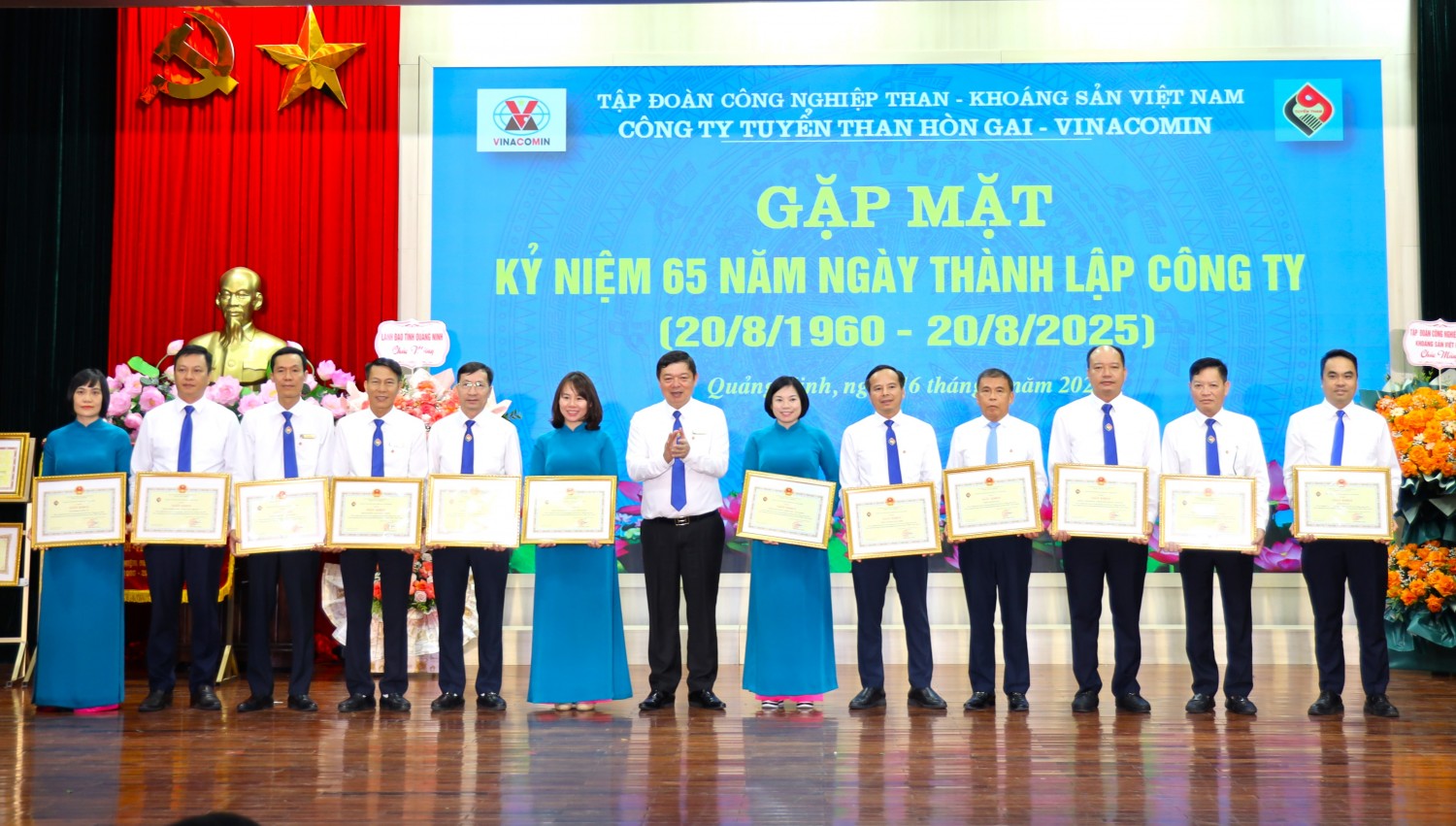 Nhân dịp này, Chủ tịch UBND tỉnh Quảng Ninh tặng Bằng khen cho Công ty; Tổng Giám đốc Tập đoàn tặng Bằng khen cho Công ty cùng 4 tập thể, 6 cá nhân xuất sắc đã có thành tích đóng góp cho sự nghiệp xây dựng và phát triển TKV; Công đoàn TKV trao bức trướng; Trung ương Đoàn tặng bằng khen cho Đoàn Thanh niên Công ty. Giám đốc Công ty khen thưởng 12 tập thể và 10 cá nhân tiêu biểu. 65 năm - một hành trình bền bỉ, từ những ngày khôi phục sản xuất trên nền tảng máy móc cũ kỹ đến hiện tại, khi các dây chuyền công nghệ hiện đại vận hành giữa không gian xanh, sạch, đẹp. Thế hệ hôm nay và mai sau sẽ tiếp bước cha anh, giữ vững ngọn lửa nhiệt huyết, đưa Tuyển than Hòn Gai trở thành biểu tượng của niềm tự hào, trách nhiệm và khát vọng vươn xa, đóng góp xứng đáng vào sự phát triển của ngành than, của Quảng Ninh và của Tổ quốc.