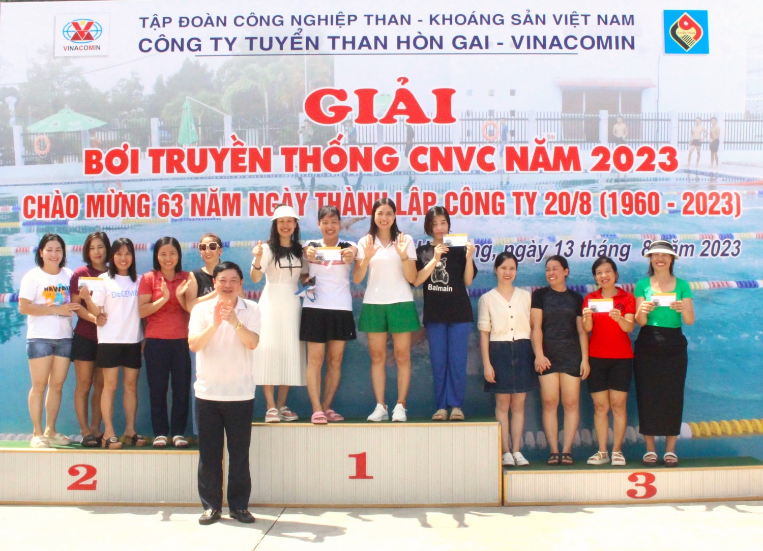 Tới dự khai mạc có các đồng chí trong ban Lãnh đạo Công ty, Lãnh đạo các đơn vị, ban tổ chức giải và các cổ động viên là CBCNV trong Công ty. Đồng chí Nguyễn Xuân Trường - Thường trực Hội đồng câu lạc bộ VHTT vùng Hạ Long đến tặng hoa chúc mừng. Giải Bơi năm nay có 12 đội, với 112 CBCNV đến từ các phân xưởng, phòng ban tham gia. Các vận động viên tham gia thi bơi ở các nội dung 50 mét, 100 mét tự do nam, nữ và 200 mét bơi tiếp sức ở các lứa tuổi 18-35, 36-45 và 46 tuổi trở lên. Trải qua ½ ngày diễn ra tranh tài với sự cổ vũ nhiệt tình của các cổ động viên đã đem lại không khí sôi động khu vực thi đấu và để lại nhiều cảm xúc cho khán giả. Kết thúc giải, Ban tổ chức đã trao thưởng cho các cá nhân và Tập thể có thành tích cao với tổng số tiền thưởng trên 100 triệu đồng. Kết quả toàn đoàn, Giải Nhất: Phân xưởng Vận tải 3; Giải Nhì: Phòng KCS; Giải Ba: Phân xưởng Vận tải 2 và giải khuyến khích thuộc về Phân xưởng Than điện và Làng khánh 2, ngoài ra ban tổ chức còn trao 07 giải thưởng động viên cho các đơn vị tham gia. Giải bơi CNVC năm 2023 của Công ty đã thành công tốt đẹp, bên cạnh việc rèn luyện sức khỏe, còn là sân chơi bổ ích, gắn bó công nhân viên chức lao động, thúc đẩy phong trào tập luyện thể thao, nâng cao sức khoẻ và đời sống tinh thần, đồng thời cũng là hoạt động thiết thực chào mừng kỷ niệm 63 năm ngày Thành lập Công ty Tuyển than Hòn Gai - Vinacomin (20/8/1960 - 20/8/2023)