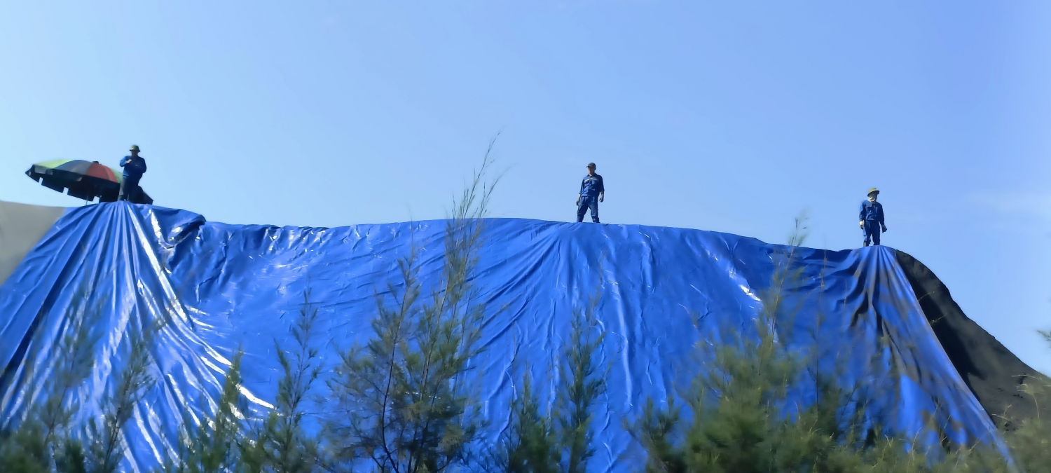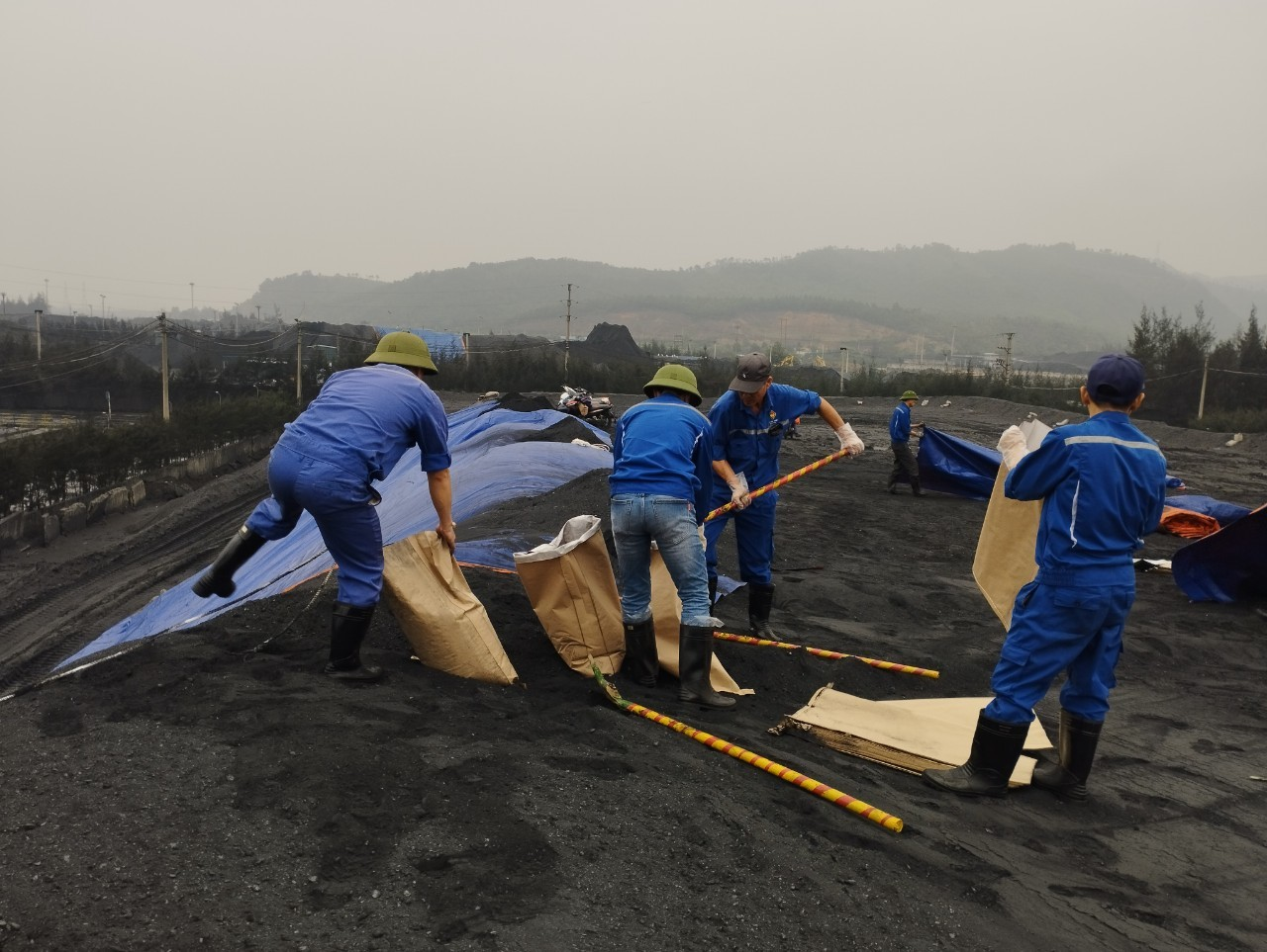 Ảnh: Thực hiện triển khai diễn tập che bạt các Kho than
