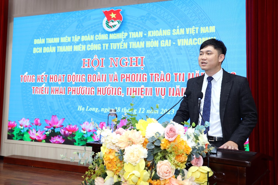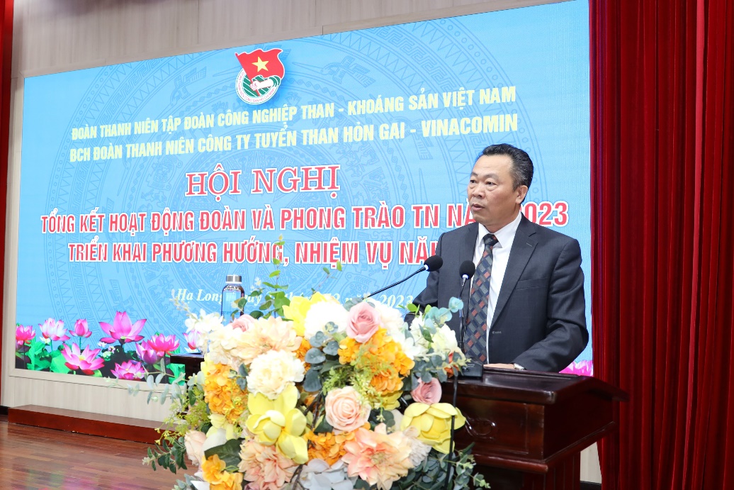 Phát biểu chỉ đạo Hội nghị, đồng chí Trương Quốc Chiến - Phó bí thư Thường trực Đảng ủy Công ty và đồng chí Lê Anh Hoàng - UV UBKT Đoàn Khối DNTW, Phó Bí thư Đoàn TKV đã ghi nhận và đánh giá cao những thành tích mà Đoàn Thanh niên Công ty đã đạt được trong năm 2023. Để triển khai thực hiện có hiệu quả các nhiệm vụ năm 2024, các đồng chí đề nghị Đoàn Thanh niên Công ty tiếp tục làm tốt công tác tuyên truyền, giáo dục, đặc biệt quan tâm nắm bắt tình hình tư tưởng, giáo dục chính trị cho đoàn viên; Công tác phát triển đảng viên và đồng thời phát huy hơn nữa tinh thần sáng tạo, tham gia sáng kiến cải tiến kỹ thuật. Đặc biệt cần tập trung vào các nội dung tiếp tục đẩy mạnh và triển khai có hiệu quả phong trào Tuổi trẻ sáng tạo; tích cực chủ động trong việc đăng ký đảm nhận, thực hiện công trình, mô hình thanh niên gắn với thực hiện nhiệm vụ sản xuất kinh doanh của đơn vị; phát huy thế mạnh, sức sáng tạo của ĐVTN trong công tác chuyển đổi số; tiếp tục thực hiện tốt công tác tổ chức xây dựng Đoàn, Đoàn tham gia xây dựng Đảng, công tác quy hoạch cán bộ Đoàn tại đơn vị.