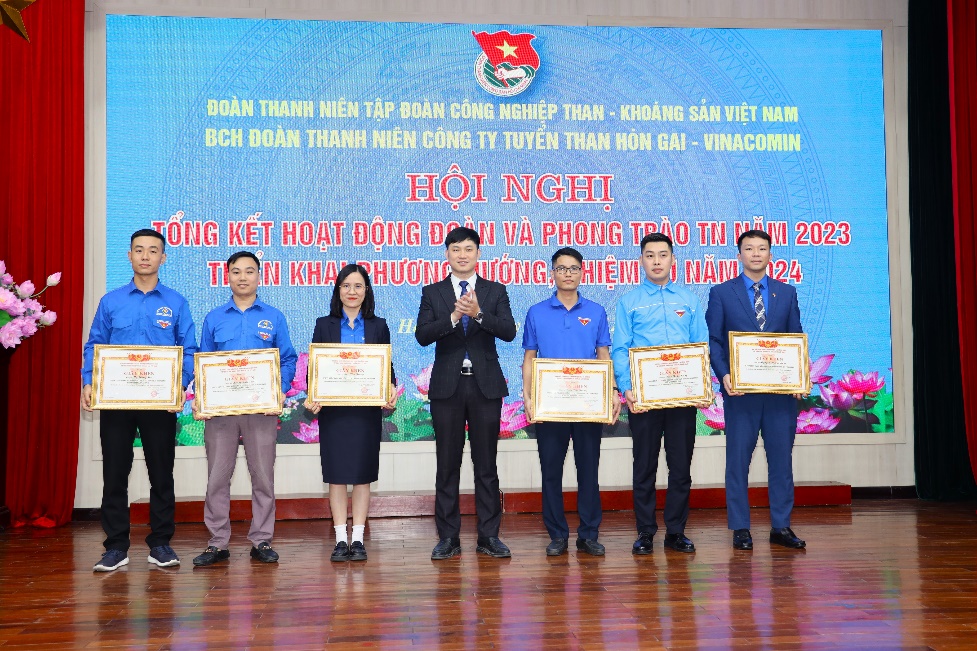Nhân dịp này, Đoàn Thanh niên TKV đã trao tặng Giấy khen cho 05 tập thể và 06 cá nhân có thành tích xuất sắc. Hội nghị cũng đã tuyên dương 09  tập thể có thành tích tiêu biểu trong hoạt động công tác Đoàn và phong trào thanh niên, đồng thời trao giấy chứng nhận cho 18 đoàn viên tiêu biểu trưởng thành Đoàn năm 2023.