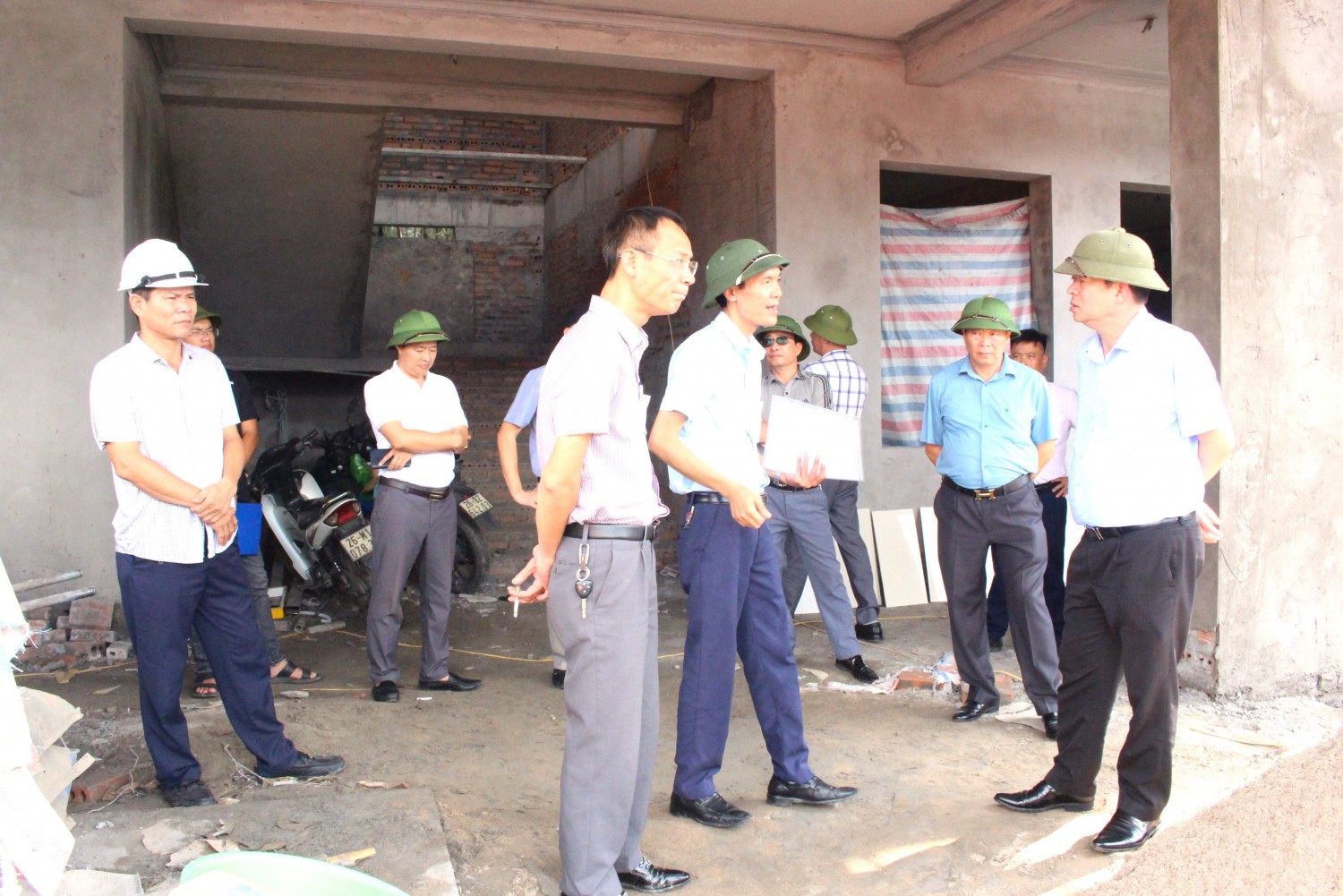 Các đồng chí lãnh đạo Công ty nghe đơn vị thi công báo cáo tiến độ thi công dự án