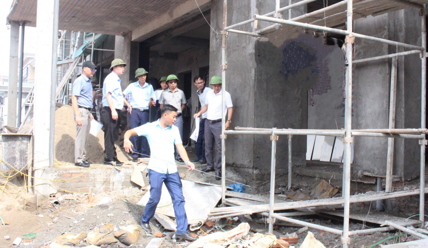 Cùng đi có đồng chí Phó bí thư Đảng ủy, Phó Giám đốc phụ trách đầu tư, Lãnh đạo các phòng ban chức năng trong Công ty và đại diện đơn vị tư vấn giám sát, đơn vị thi công công trình xây dựng. Đoàn công tác đã đi kiểm tra tiến độ triển khai thi công, hiện nay nhà văn phòng làm việc đang bước vào giai đoạn nước rút, hoàn thiện những khâu cuối cùng để đưa vào sử dụng trong tháng 10/2023. Qua quá trình kiểm tra, Giám đốc Công ty đã trực tiếp lắng nghe Phòng ĐTM và đơn vị nhà thầu báo cáo kết quả từ khi bắt đầu khởi công đến nay, đơn vị thi công đã huy động nhiều các máy móc thiết bị, tập trung tối đa nguồn nhân lực, tăng cường các giải pháp để làm việc và nâng cao chất lượng công trình đảm bảo về thời gian đúng tiến độ, những khó khăn, vướng mắc hiện còn gặp phải. Đồng chí Giám đốc yêu cầu các nhà thầu tiếp tục tăng cường thi công, huy động trang thiết bị máy móc kỹ thuật, tăng cường thêm nhân lực, tổ chức các phương án thi công hiệu quả, an toàn, đảm bảo tiến độ, chất lượng công trình, đặc biệt phải đảm bảo đủ các điều kiện để gắn biển công trình chào mừng Kỷ niệm 60 năm Ngày thành lập tỉnh Quảng Ninh 30/10.