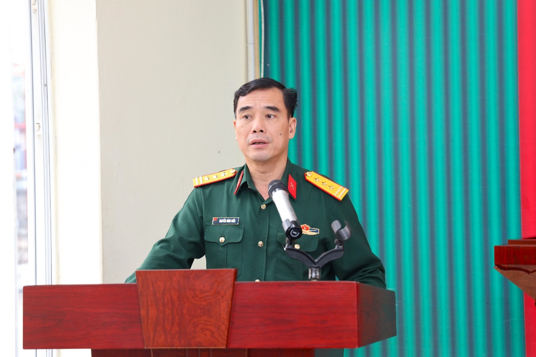 Đồng chí Thượng tá Nguyễn Đình Điển - Thủ trưởng Phòng Tham mưu (Bộ CHQS tỉnh Quảng Ninh) phát biểu khai mạc lớp huấn luyện
