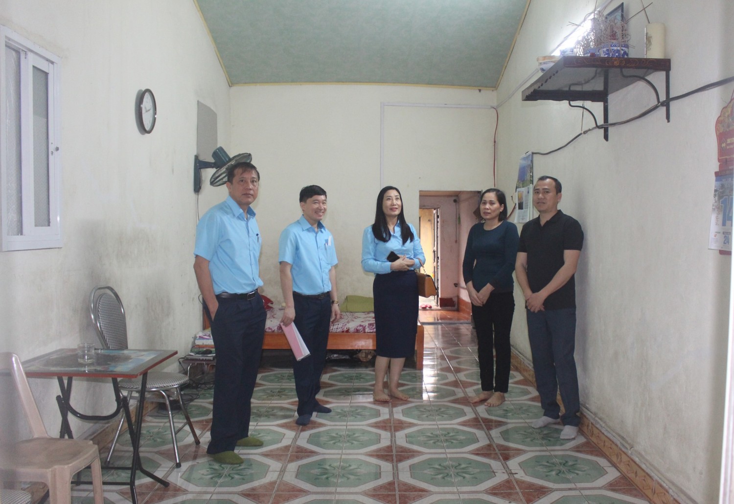 Đoàn khảo sát tại nhà ở của chị Ngô Thị Duyên - Phân xưởng Sàng Tuyển