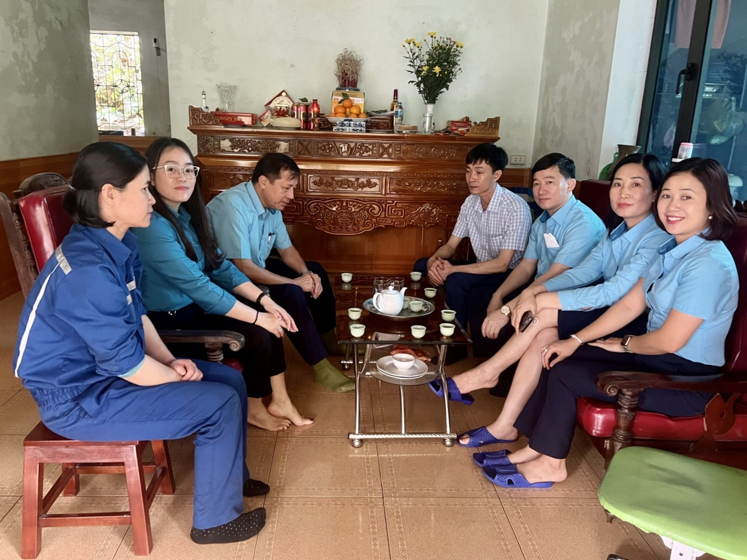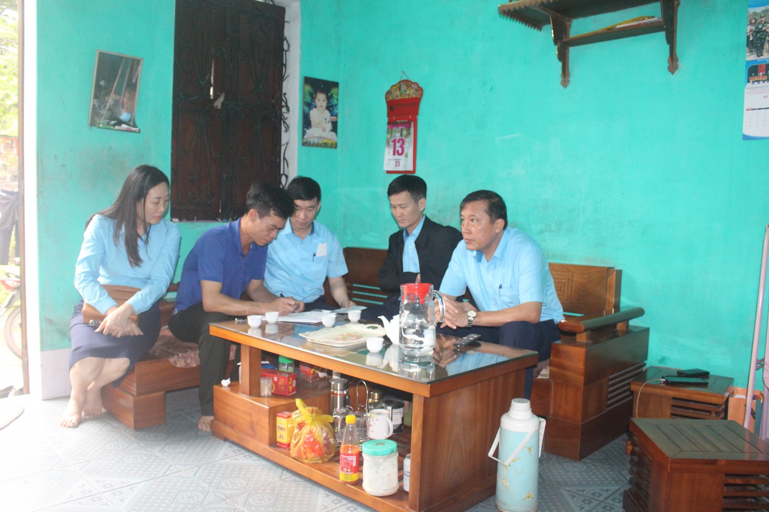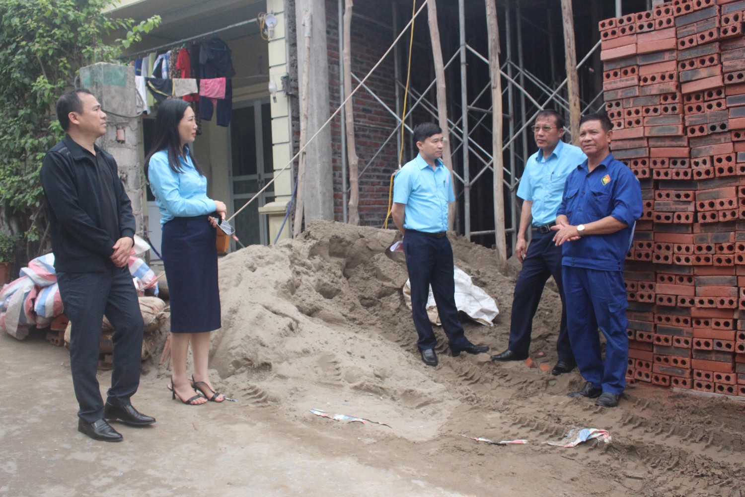 Đ/c Bùi Hữu Lý - Chủ tịch Công đoàn Công ty, cùng đoàn khảo sát tại nhà của chị Đỗ Thị Kim Ngân - PX Cảng NCT