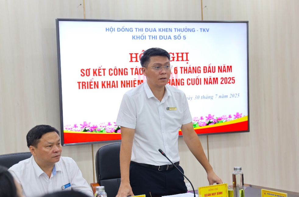 Tại Hội nghị, đồng chí Đoàn Huy Bình - Phó Giám đốc Công ty Tuyển than Hòn Gai, Khối phó Khối thi đua số 5 TKV đã trình bày báo cáo sơ kết công tác thi đua 6 tháng đầu năm và triển khai nhiệm vụ 6 tháng cuối năm 2025. Trong bối cảnh còn nhiều khó khăn, áp lực lớn từ nhiệm vụ sản xuất kinh doanh, các đơn vị trong Khối đã nỗ lực đổi mới, phát động nhiều phong trào thi đua thiết thực, sôi nổi, gắn với mục tiêu cụ thể của từng đơn vị. Các phong trào thi đua đã trở thành động lực mạnh mẽ, góp phần quan trọng vào việc thực hiện thắng lợi nhiệm vụ được giao. Hầu hết các chỉ tiêu chủ yếu như: Sản lượng, tiêu thụ, tiền lương… đều cơ bản hoàn thành và vượt mức kế hoạch đề ra. Công tác an toàn lao động, an ninh trật tự, phòng ngừa tai nạn và sự cố thiết bị tiếp tục được các đơn vị chú trọng, kiểm soát chặt chẽ, bảo đảm môi trường làm việc ổn định, an toàn cho người lao động.