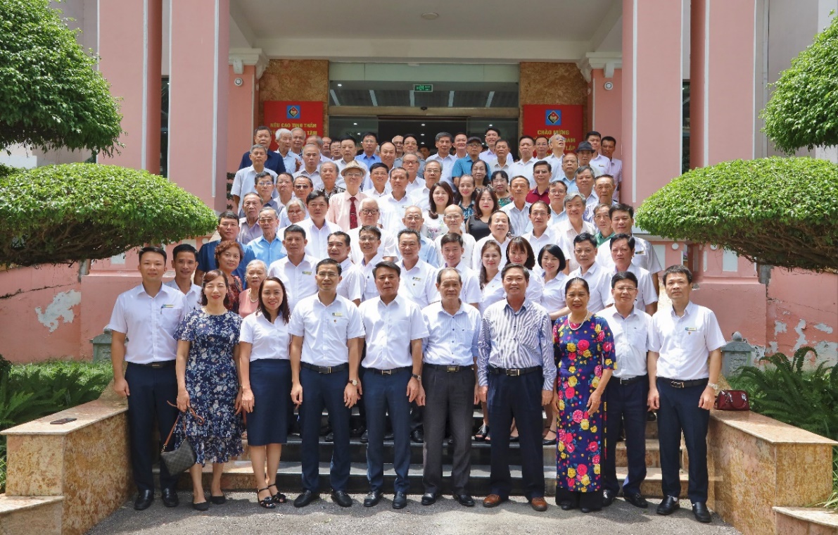 Cán bộ chủ chốt của Công ty qua các thời kỳ chụp ảnh lưu niệm tại tiền sảnh tòa nhà Văn phòng Công ty
