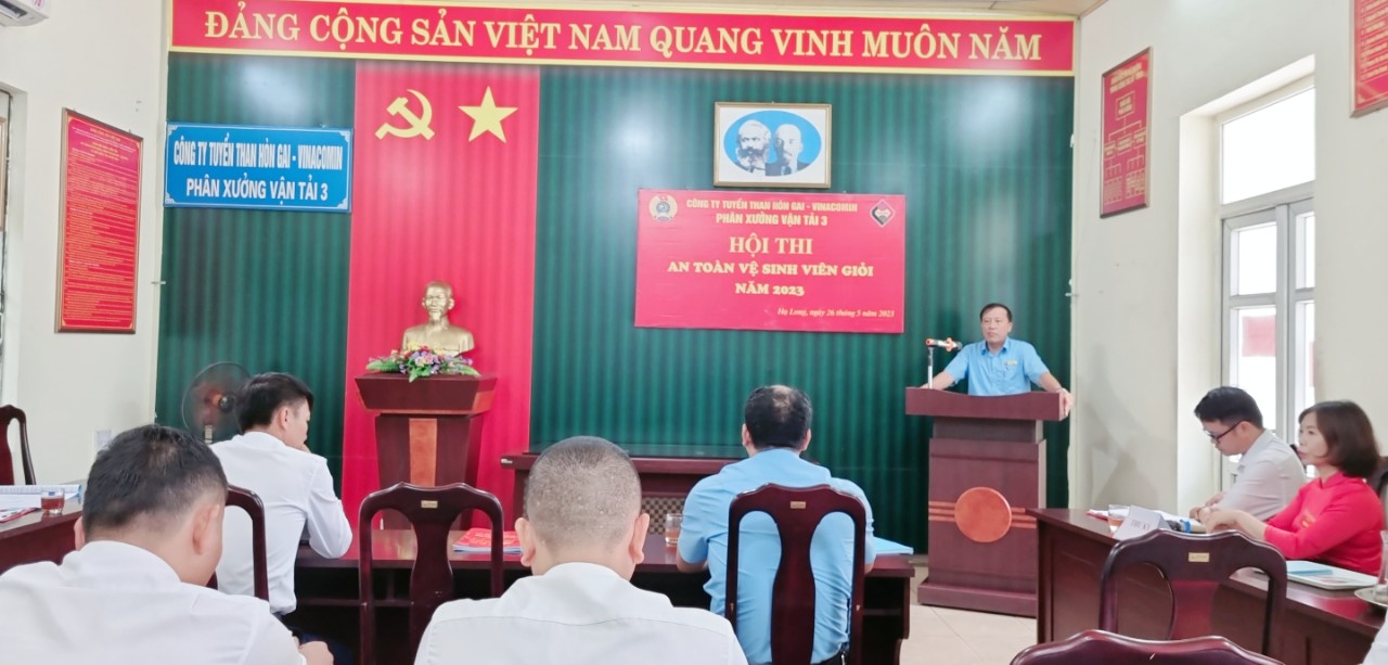 Thực hiện Kế hoạch liên tịch số 1633 KHLT/GĐ-CĐ TTHG ngày 27/4/2023 của Giám đốc và Công đoàn Công ty về việc tổ chức Hội thi An toàn vệ sinh viên (ATVSV) giỏi năm 2023. Ngày 26/5/2023, Phân xưởng Vận tải 3, Công ty Tuyển than Hòn Gai - Vinacomin tổ chức Hội thi AT-VSV Cấp phân xưởng giỏi năm 2023.